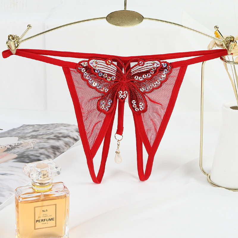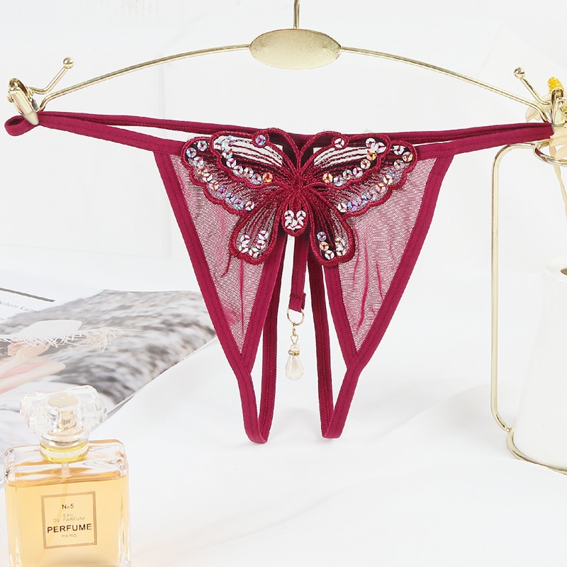 淘宝夜美人的诱惑,性感开裆蕾丝布内裤女日系纯欲风吊坠刺绣亮片丁字裤女士低腰t裤