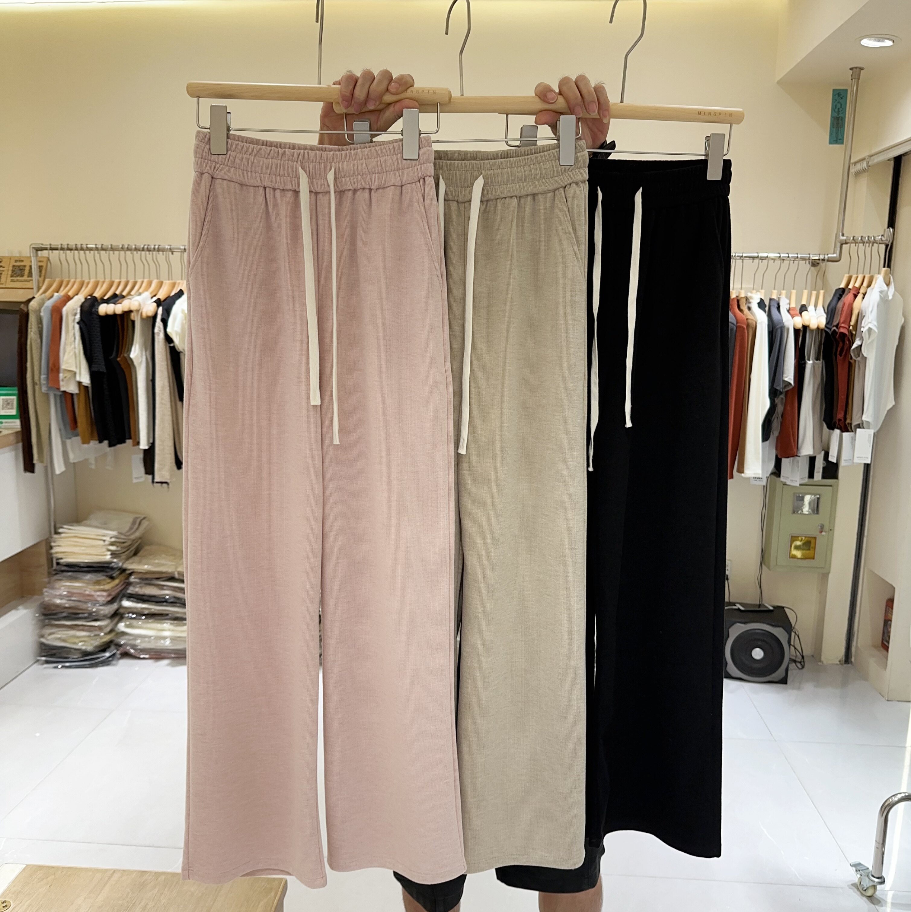 高性价比!亲肤秋款绒面磨毛阔腿裤窄版女松…