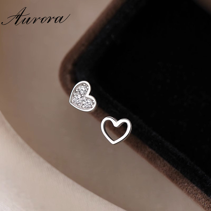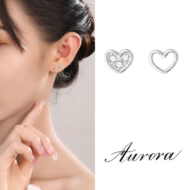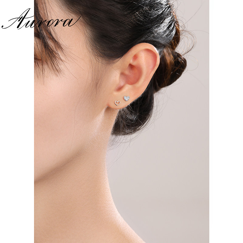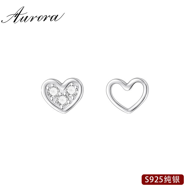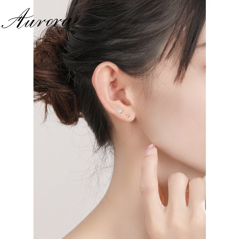 淘宝AOR饰品,925纯银不对称爱心耳钉洗睡免摘养耳洞耳环女2023新款爆款耳饰品