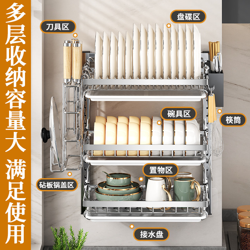 淘宝钢焰密语,壁挂式不锈钢碗架厨房置物架