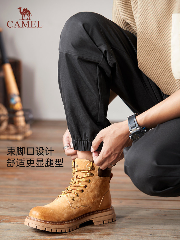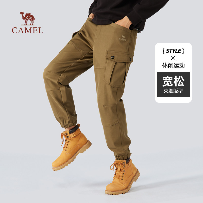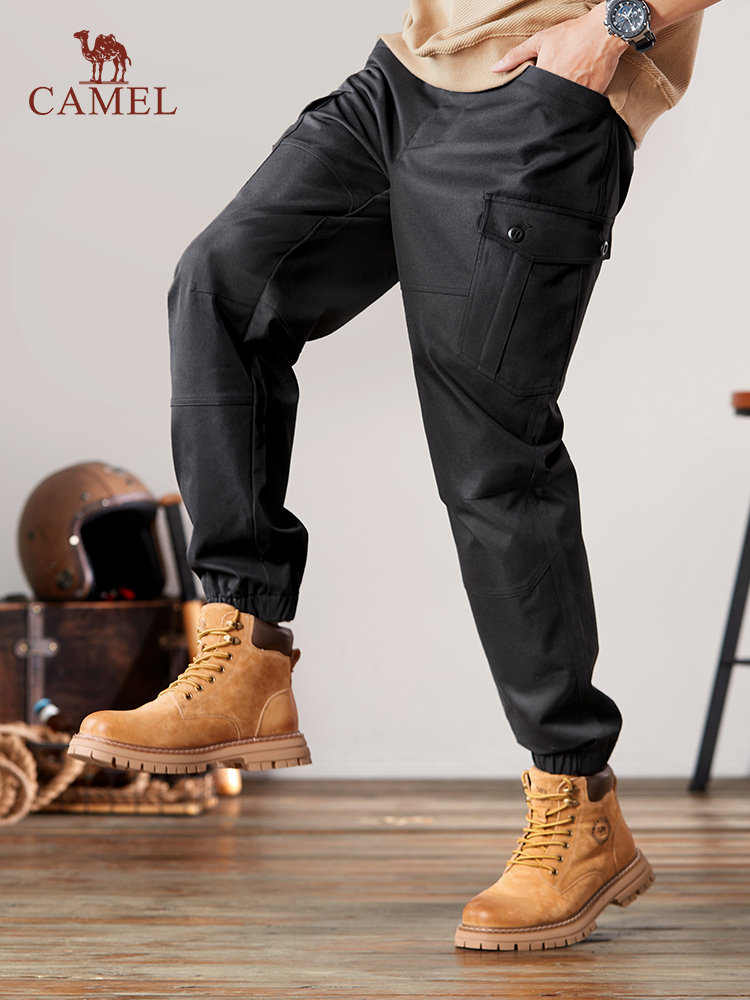 骆驼男装工装裤子男春秋新款宽松运动黑色休闲裤束脚长裤加绒可选