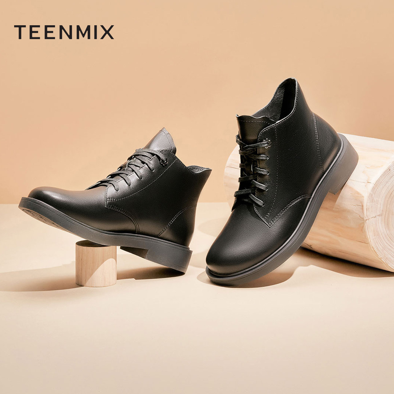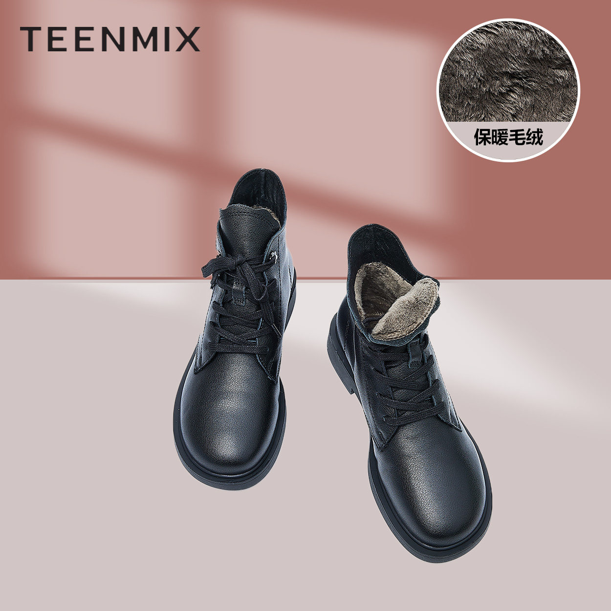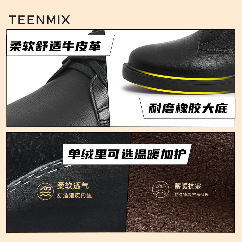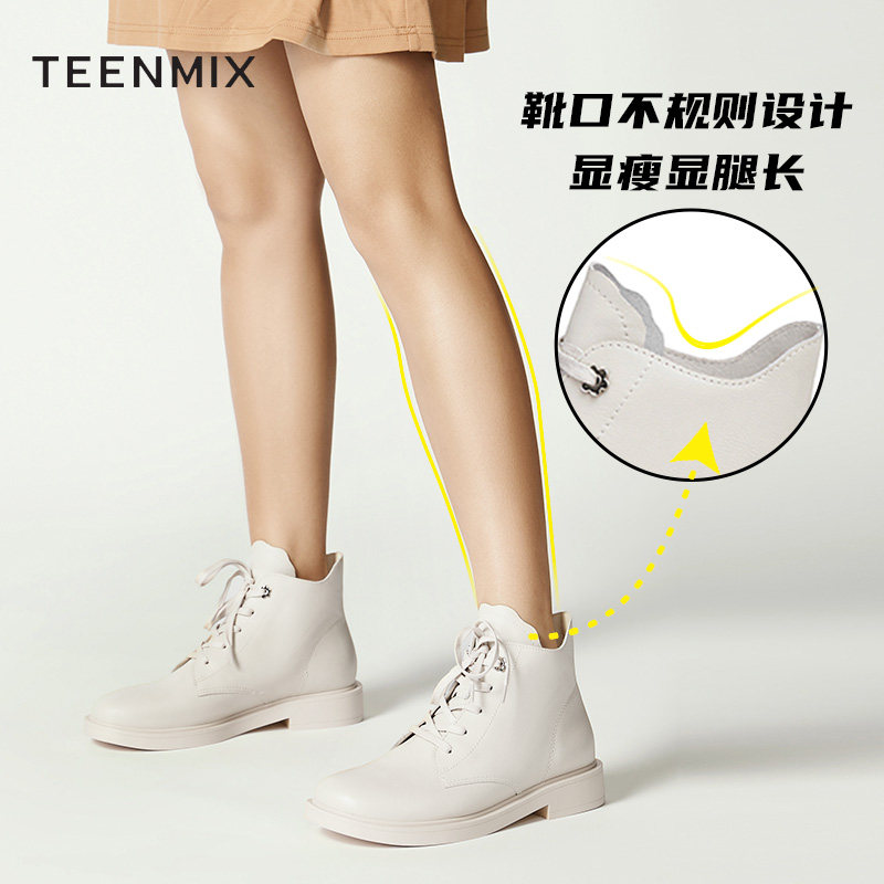 天猫天美意teenmix官方旗舰店,天美意保暖加绒皮工装靴新款马丁靴,百搭简约 潮范气质