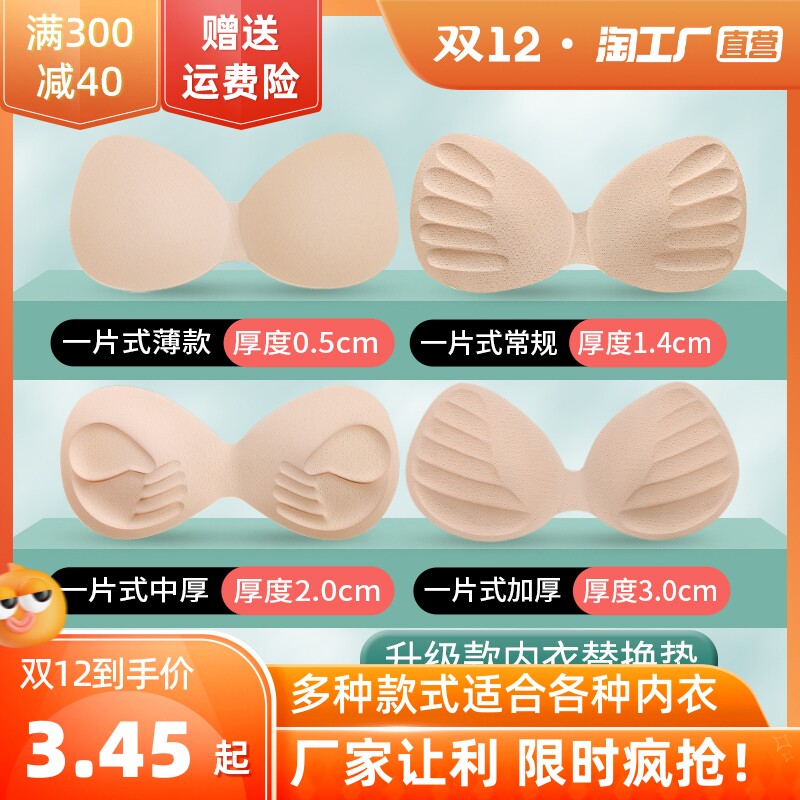 天猫天天特卖工厂店,胸垫插片运动内衣海绵垫一片式加厚聚拢胸罩文胸替换垫片夏季,水洗不变形 隐私发货