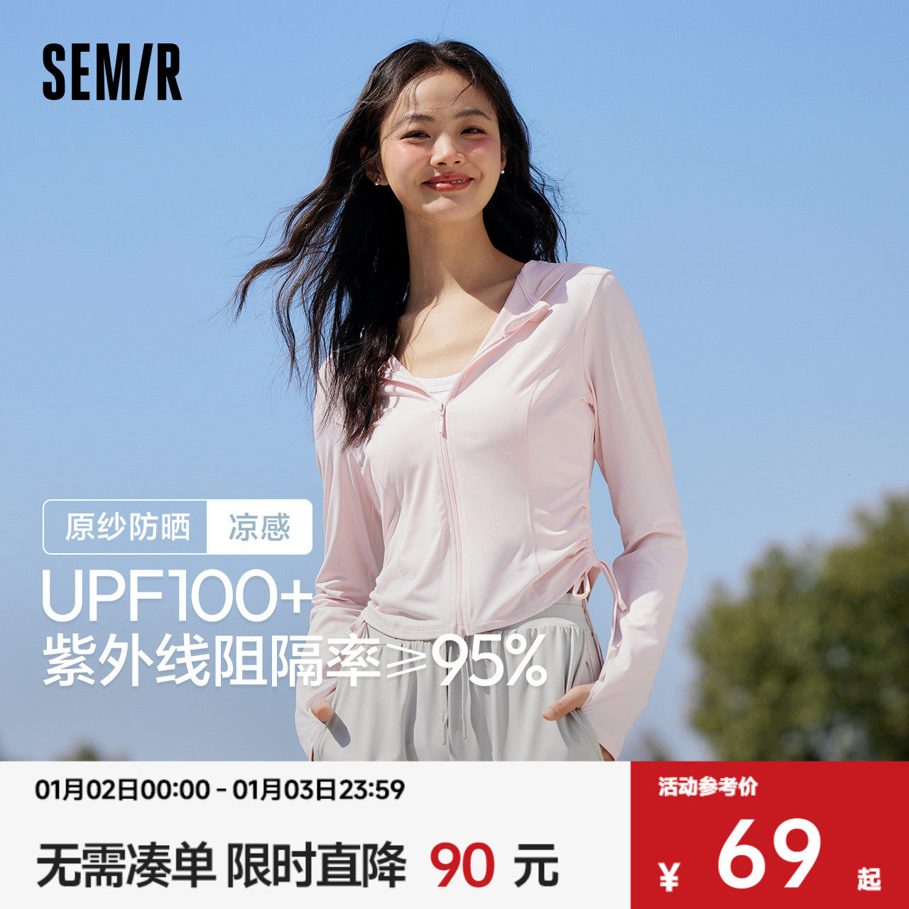 天猫森马官方旗舰店,森马凉感防晒连帽抽绳短款外套女,多色随你搭 侧抽绳凹造型 凉感防晒UPF100+