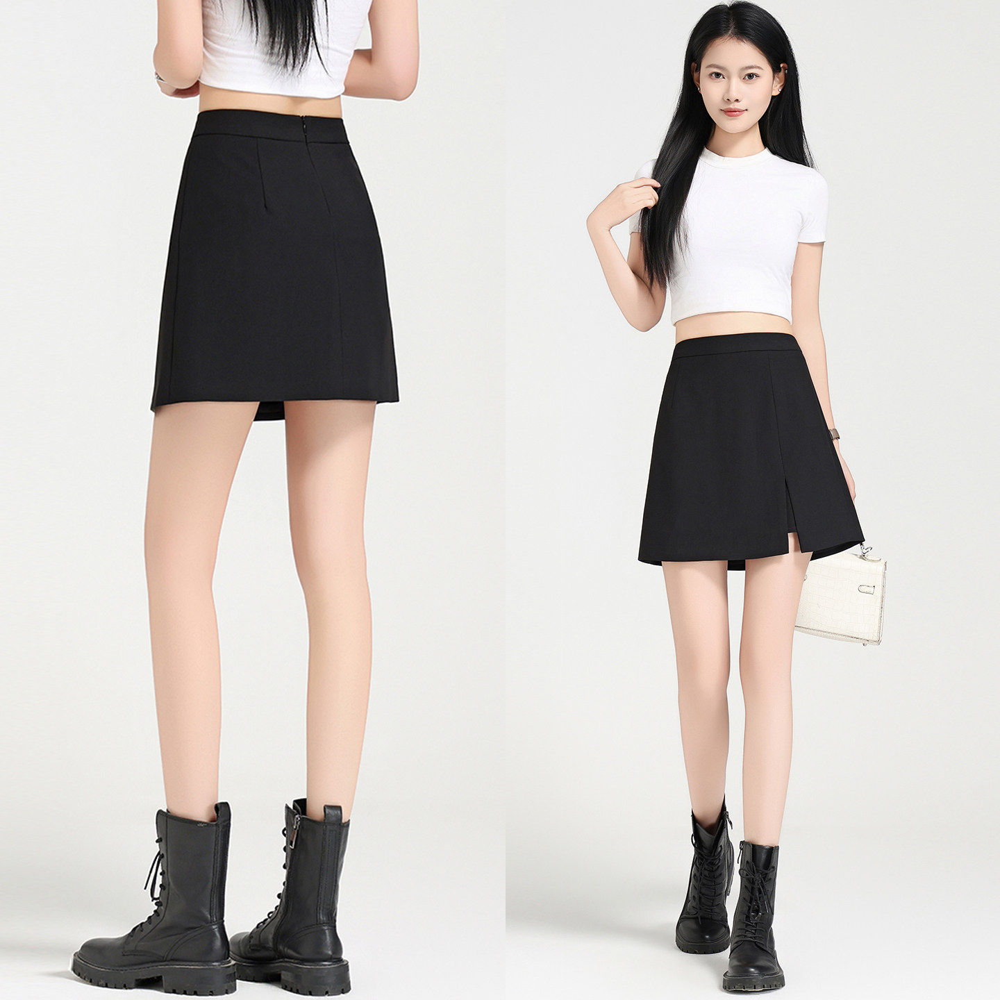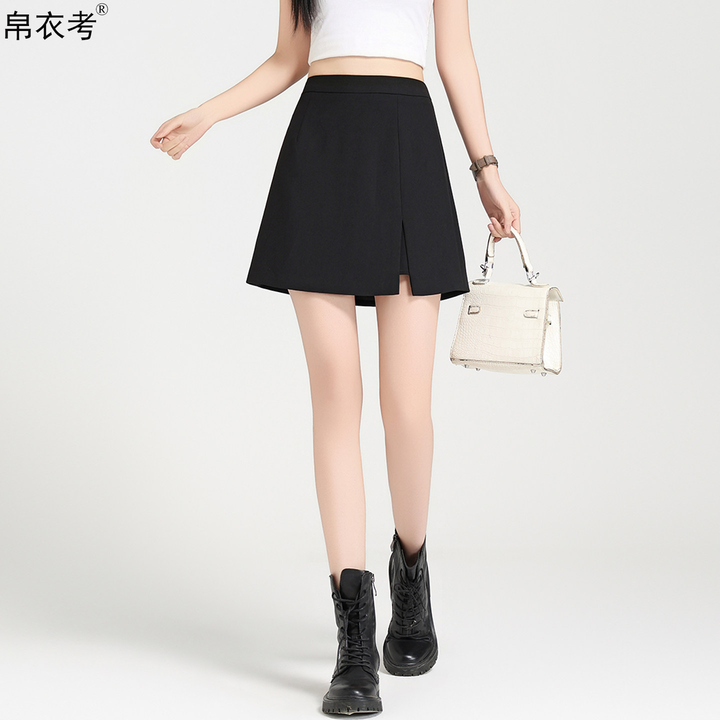淘宝帛衣考,帛衣考短款A字裙通勤A开叉半身裙