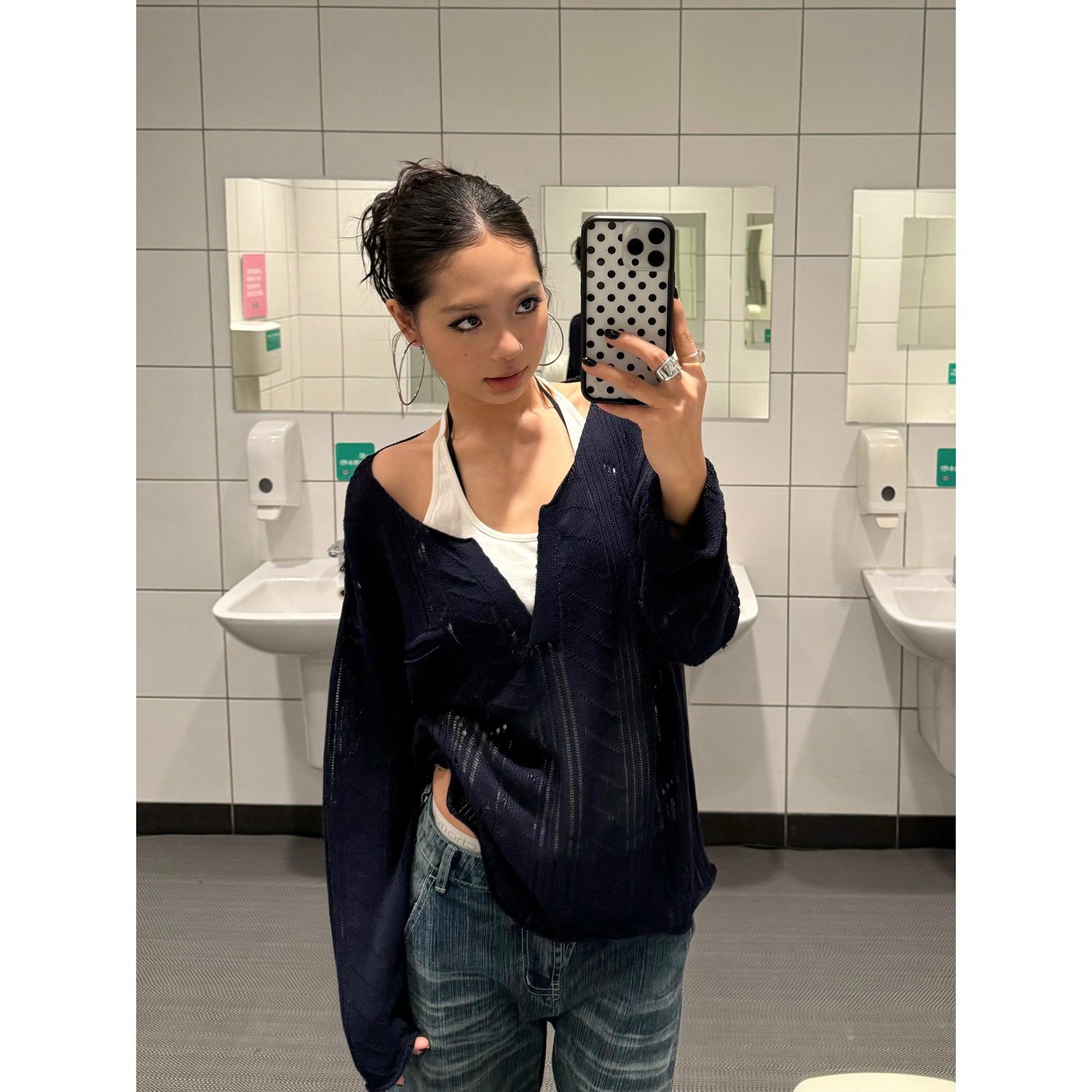 淘宝F383,F383美式复古镂空针织长袖罩衫
