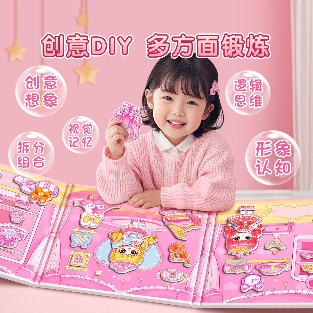 天猫星星舟旗舰店,公主换装贴纸磁力安静书女孩玩具,磁力安静书免裁剪