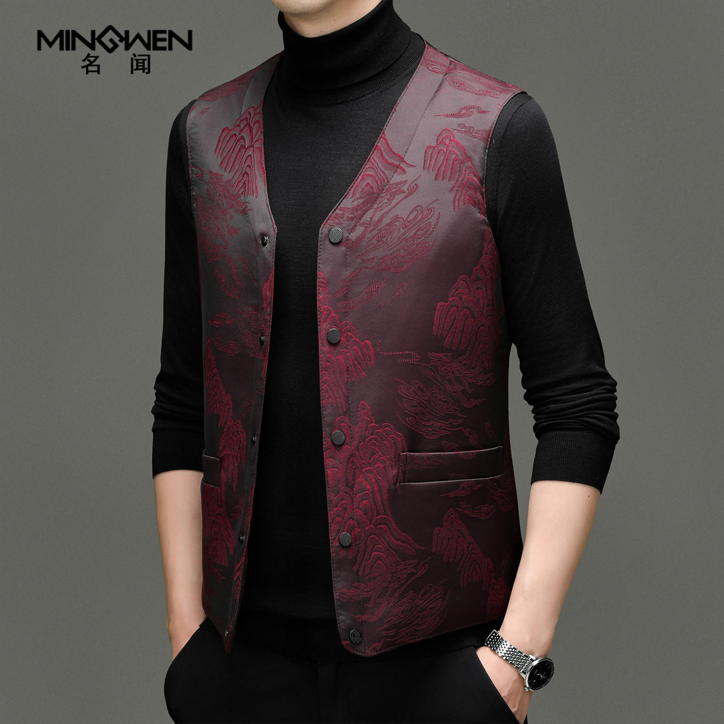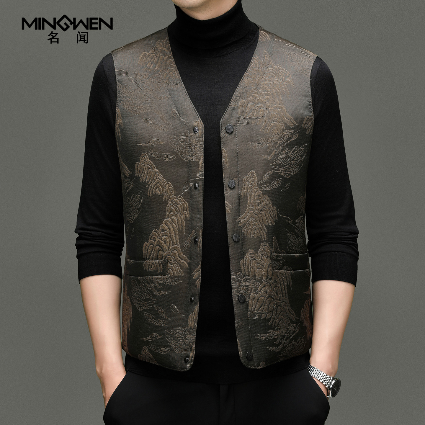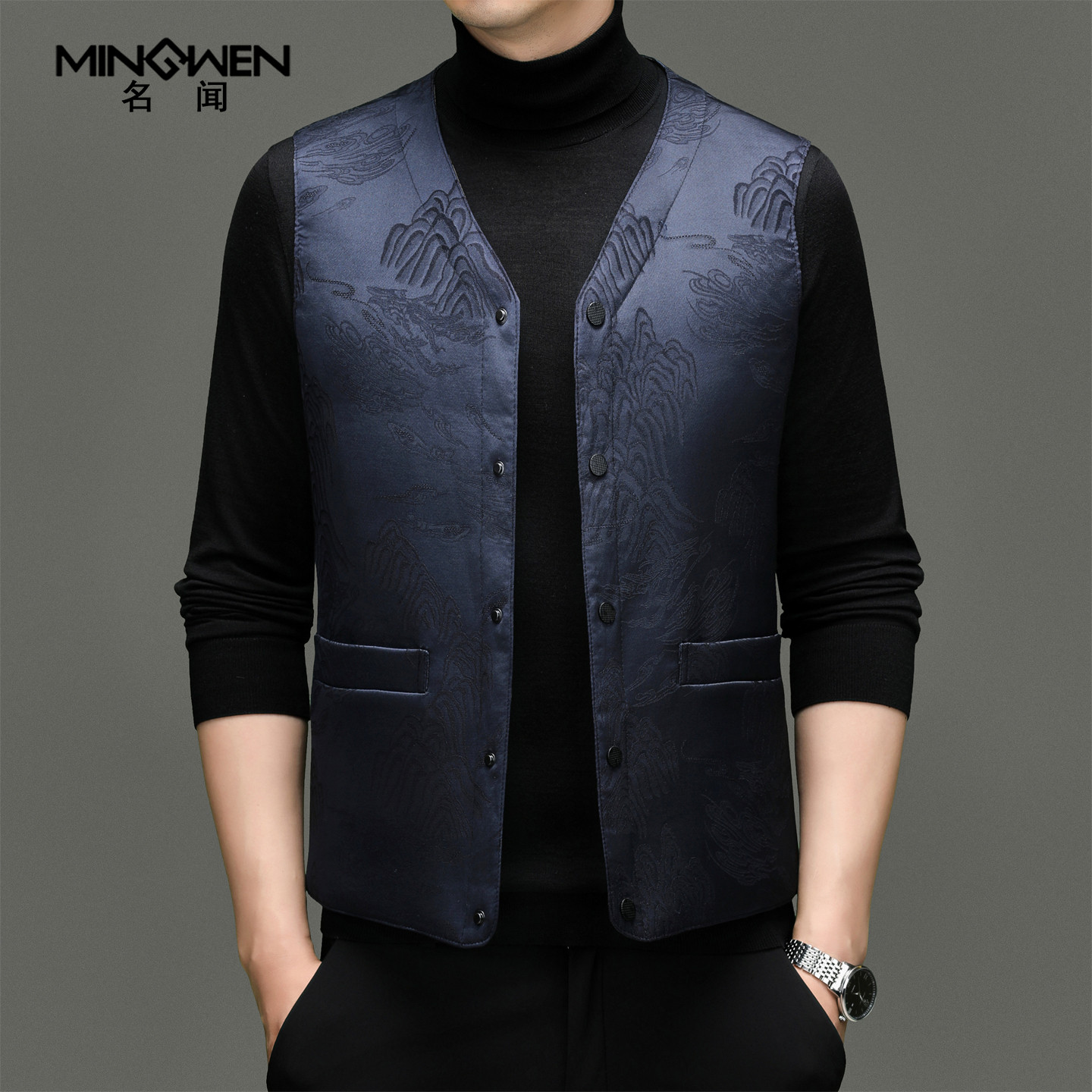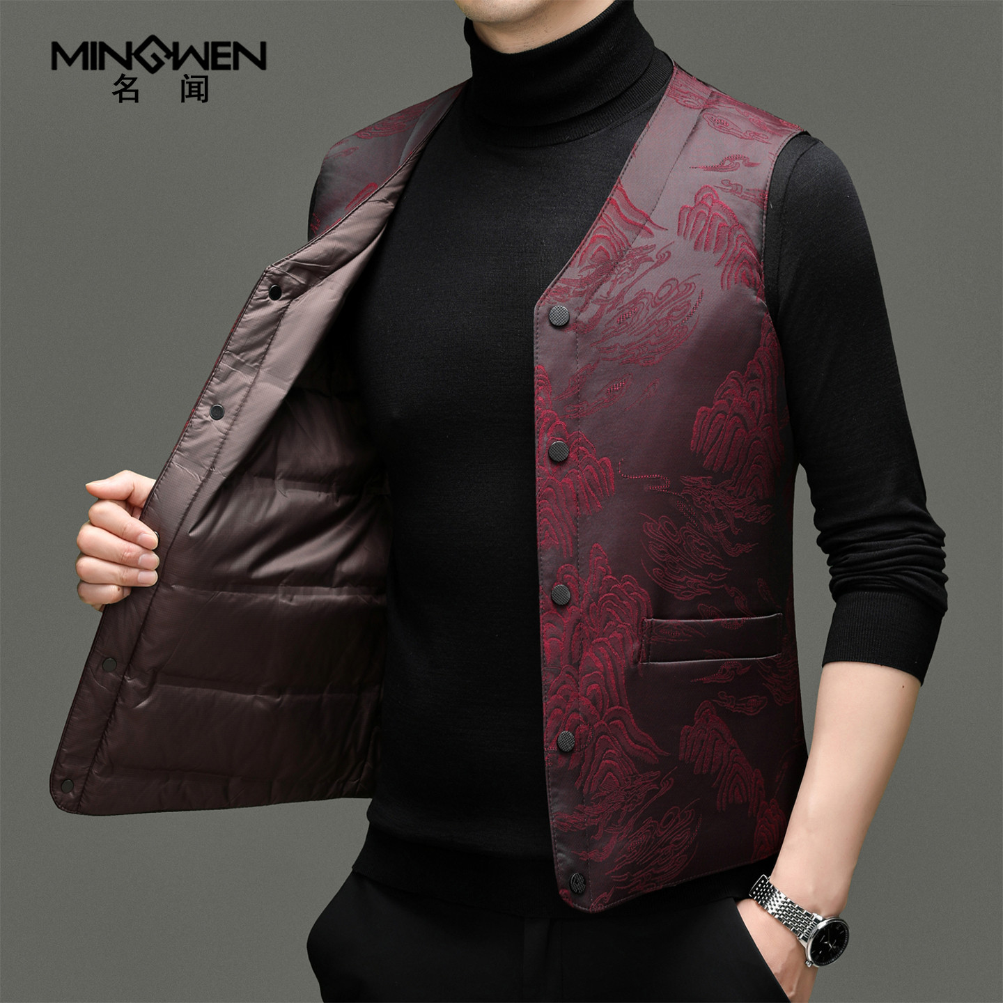 天猫名闻旗舰店,中国风提花V领羽绒马甲,潮流精品,品质保证