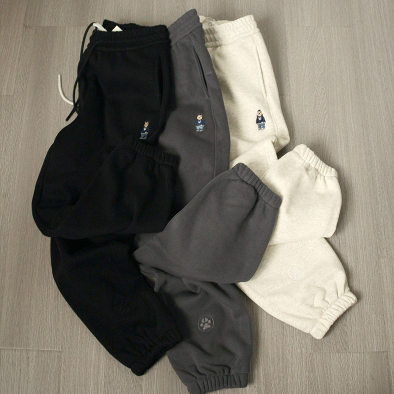 淘宝威廉的告白,口碑好货冬季加绒小熊卫裤~小爪子刺绣松紧腰收口棉质休闲长裤女