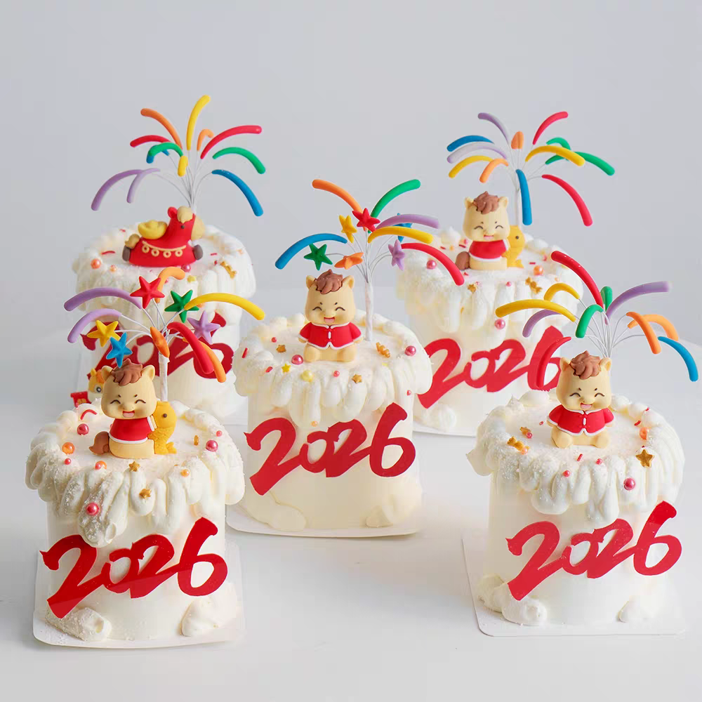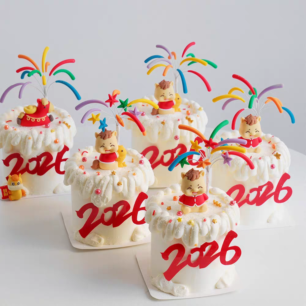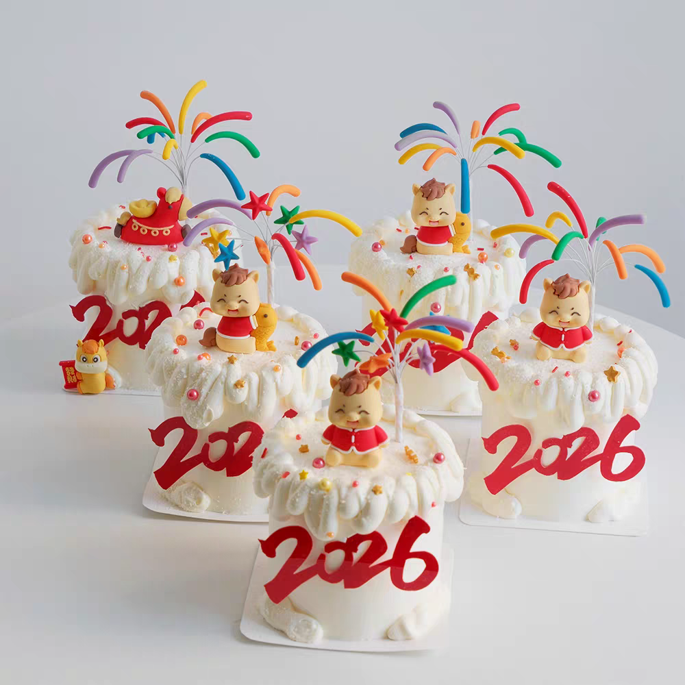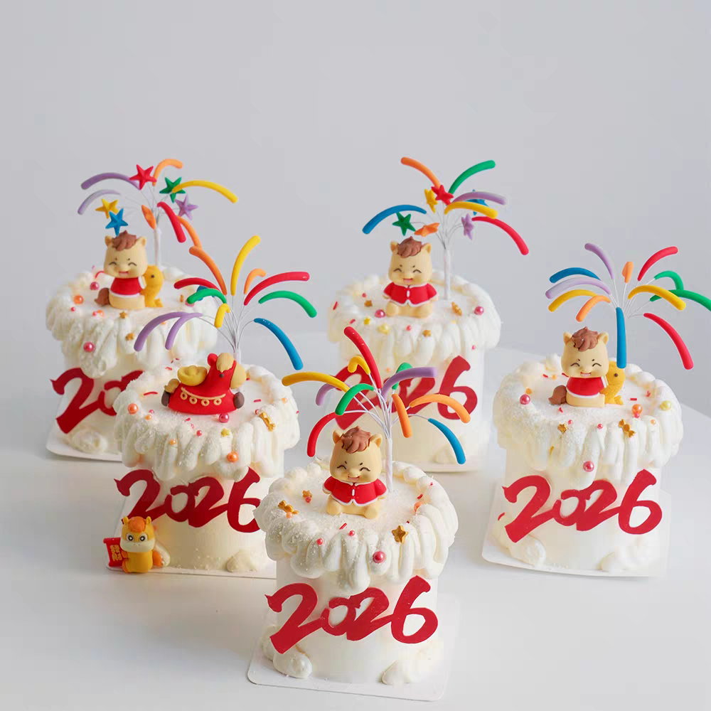 淘宝果果酱烘焙坊,2026新年生肖小马软胶彩色星星礼花马年跨年元旦烘焙蛋糕装饰摆件