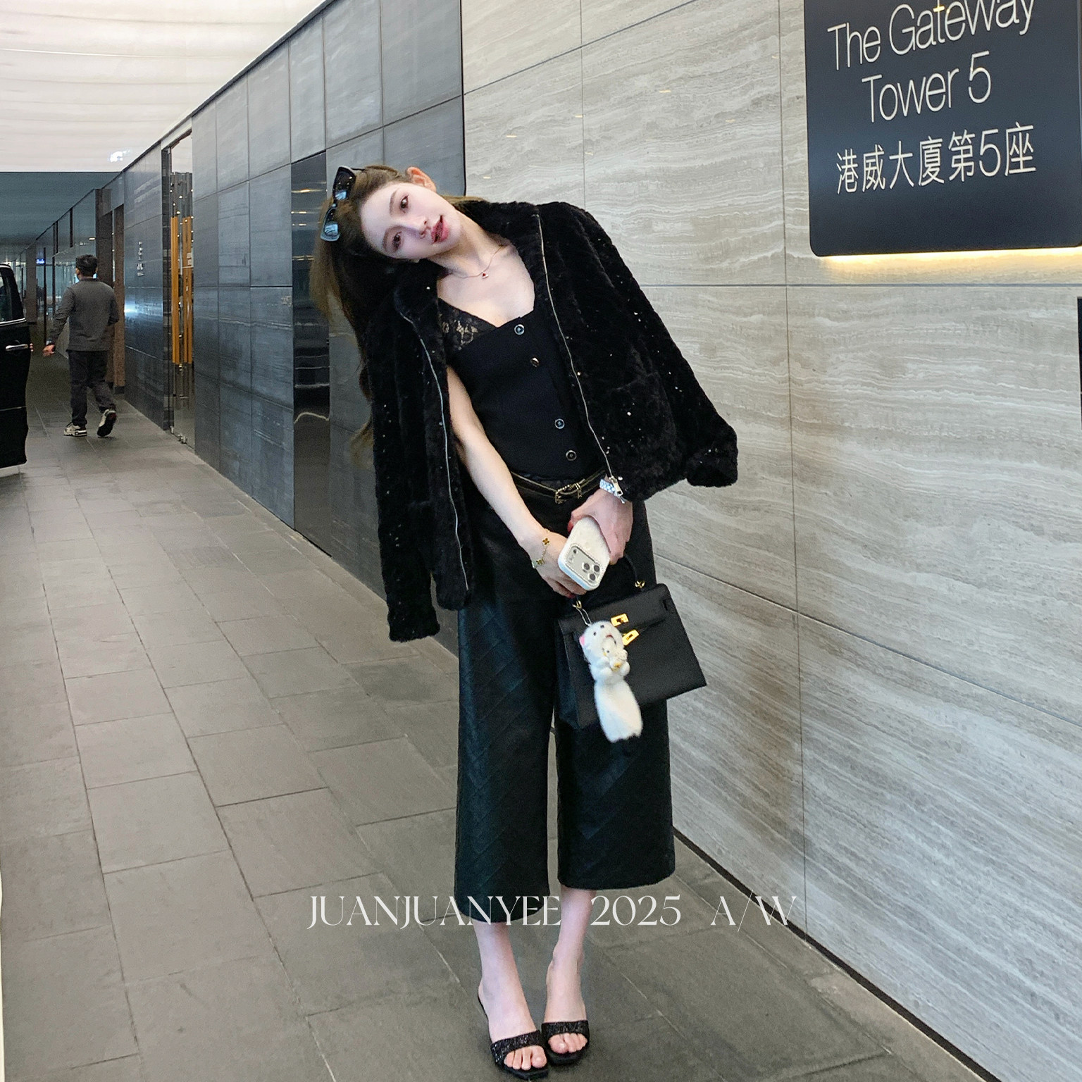 淘宝JuanJuanYee,juanjuanyee【菱格皮裤】定制小香风菱格纹直筒阔腿7分百搭皮裤女