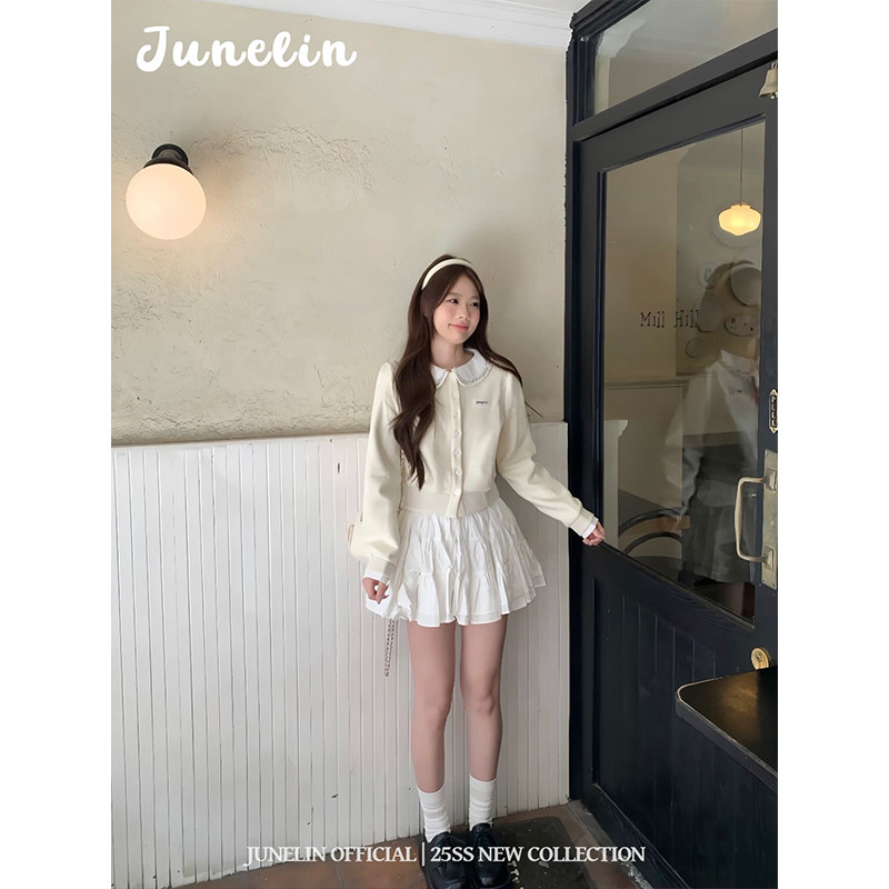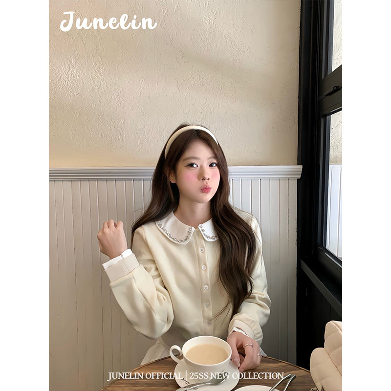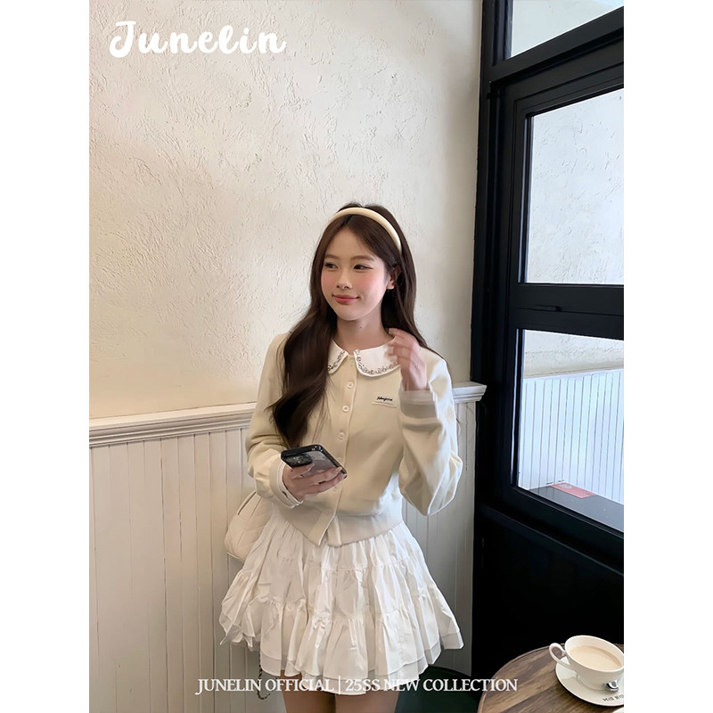 淘宝Linn Studios,六月林 法式高级感气质减龄千金风娃娃领水钻白色小香风外套温柔