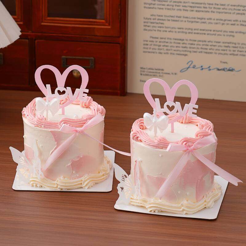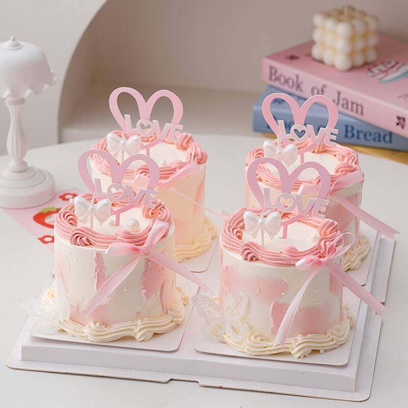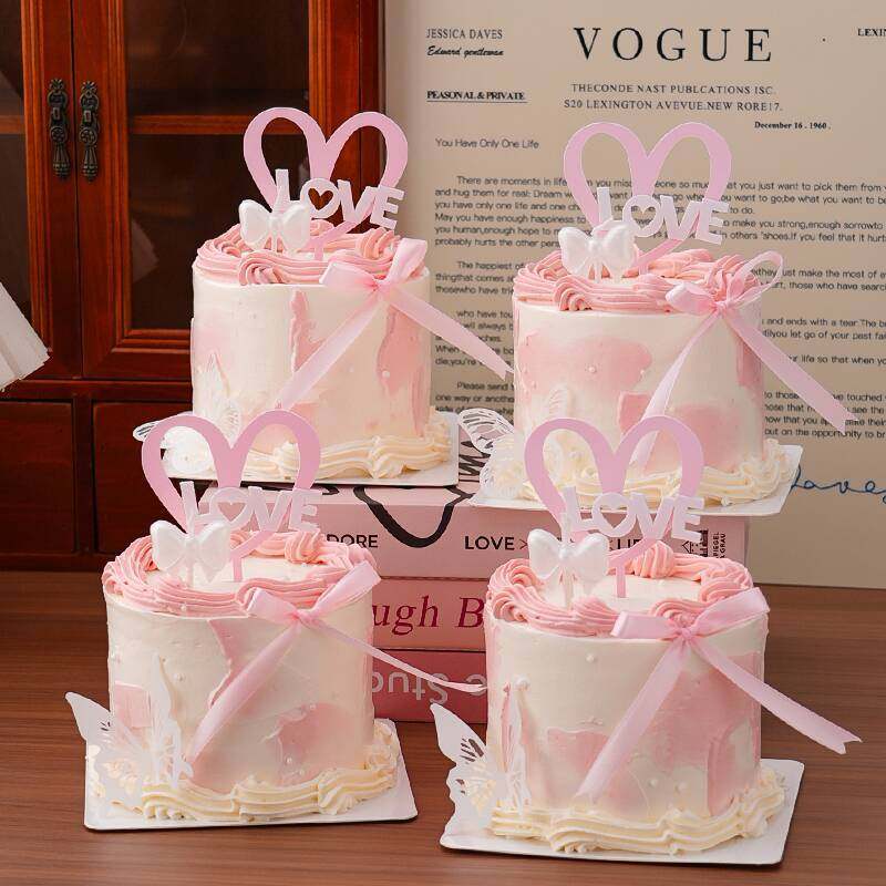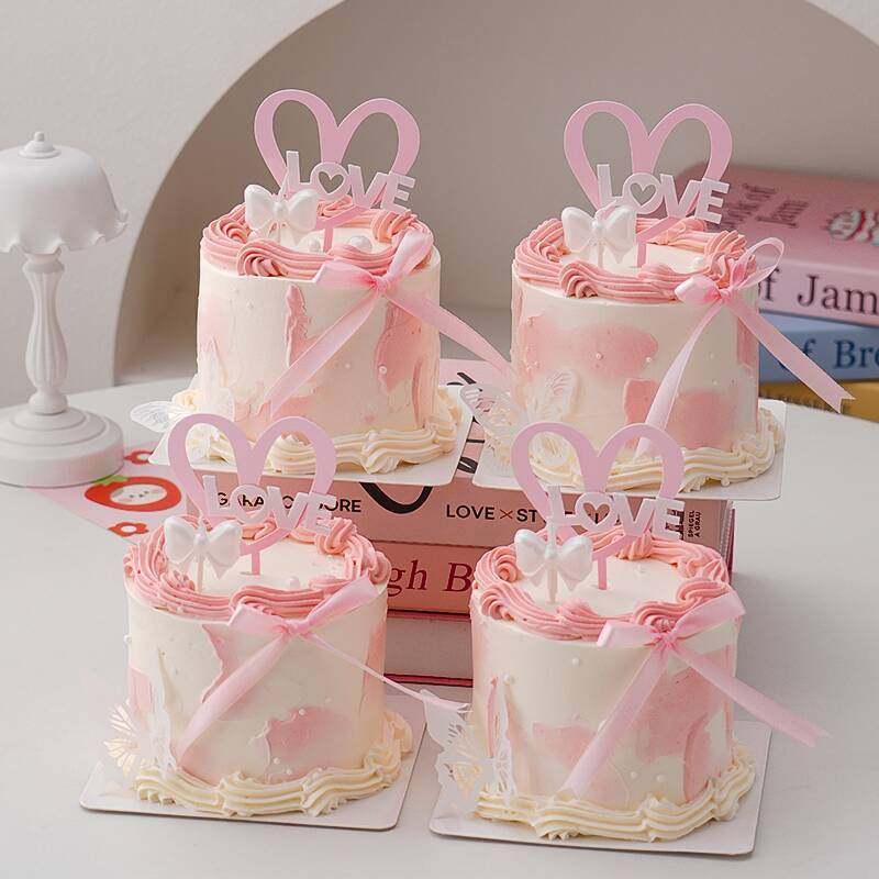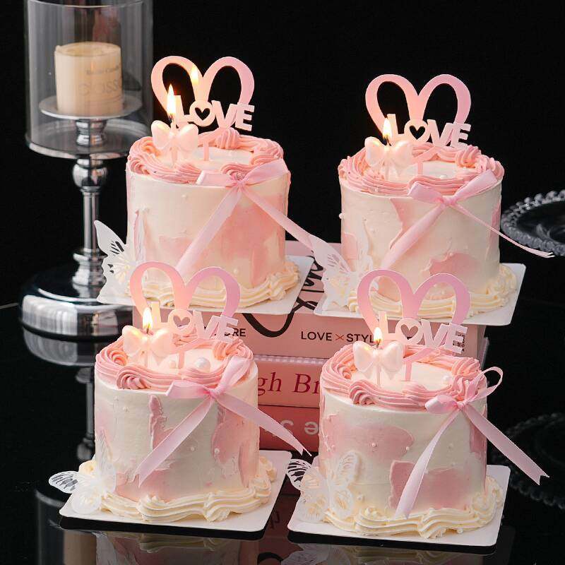 淘宝天野烘焙,2026情人节蛋糕装饰爱心亚克力插牌唯美蝴蝶结蜡烛甜品装扮摆件