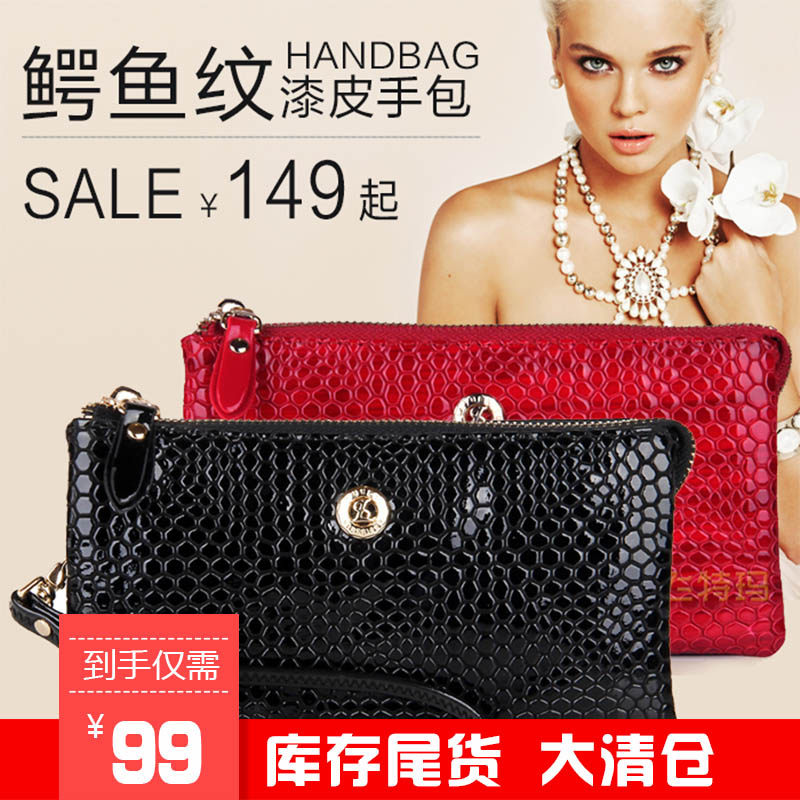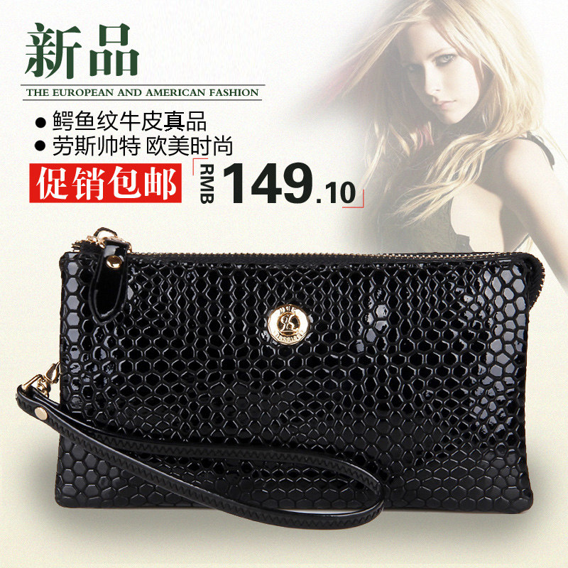 劳斯帅特专柜女士手包新款宴会皮包鳄鱼纹牛皮漆皮手拿包欧美潮包