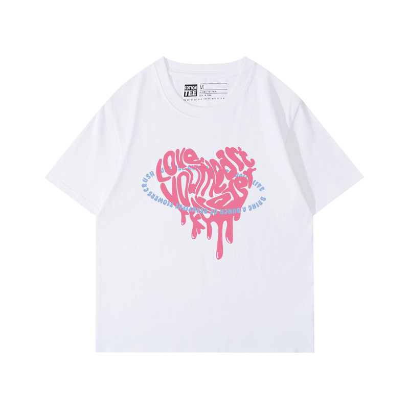 天猫jktee旗舰店,jktee爱心白色正肩短袖女纯棉t恤