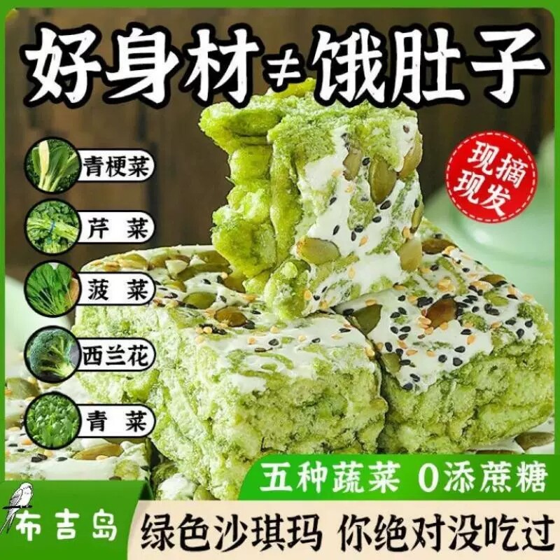 奶盖五蔬青汁蛋黄香沙琪玛轻食代餐饱腹蔬菜无蔗糖早餐休闲零食