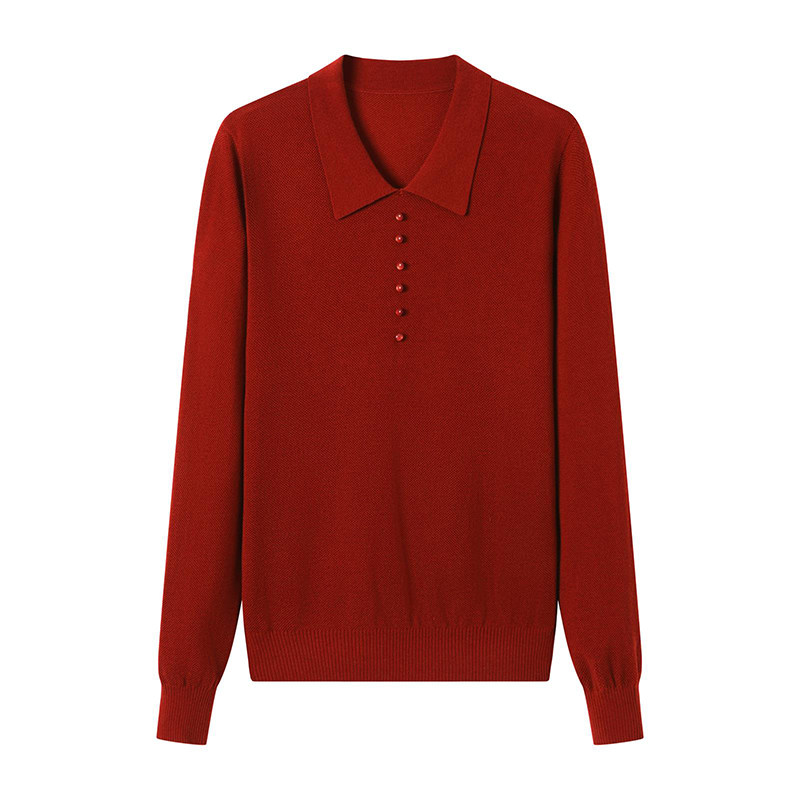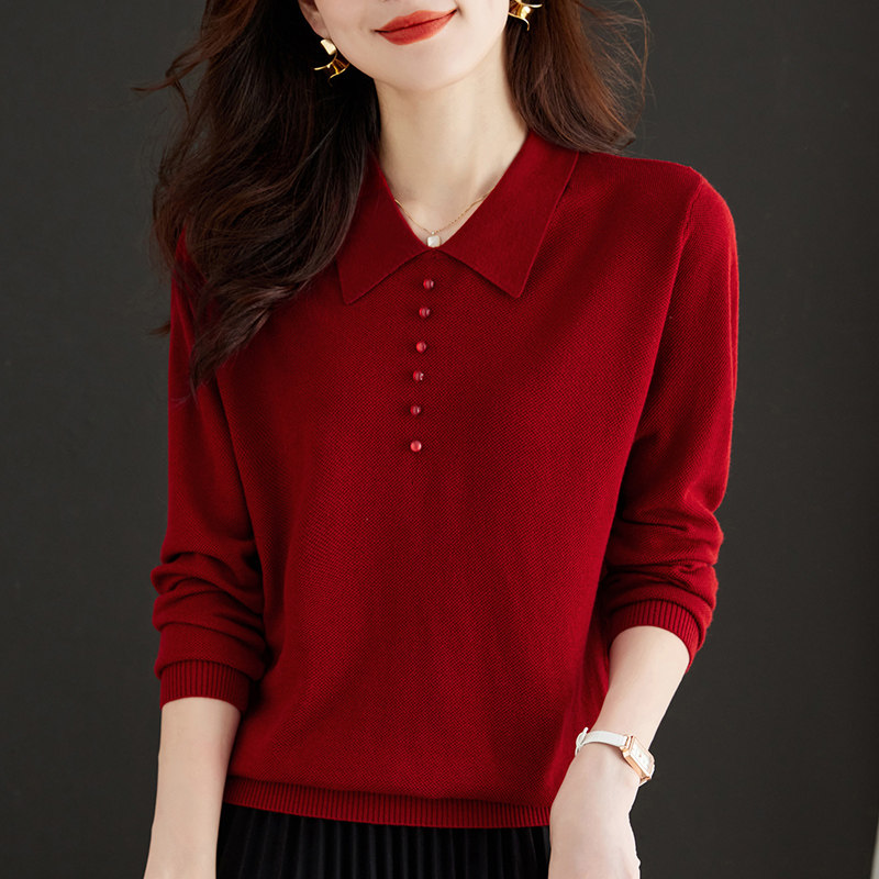 红色小翻领女薄款内搭针织衫上衣