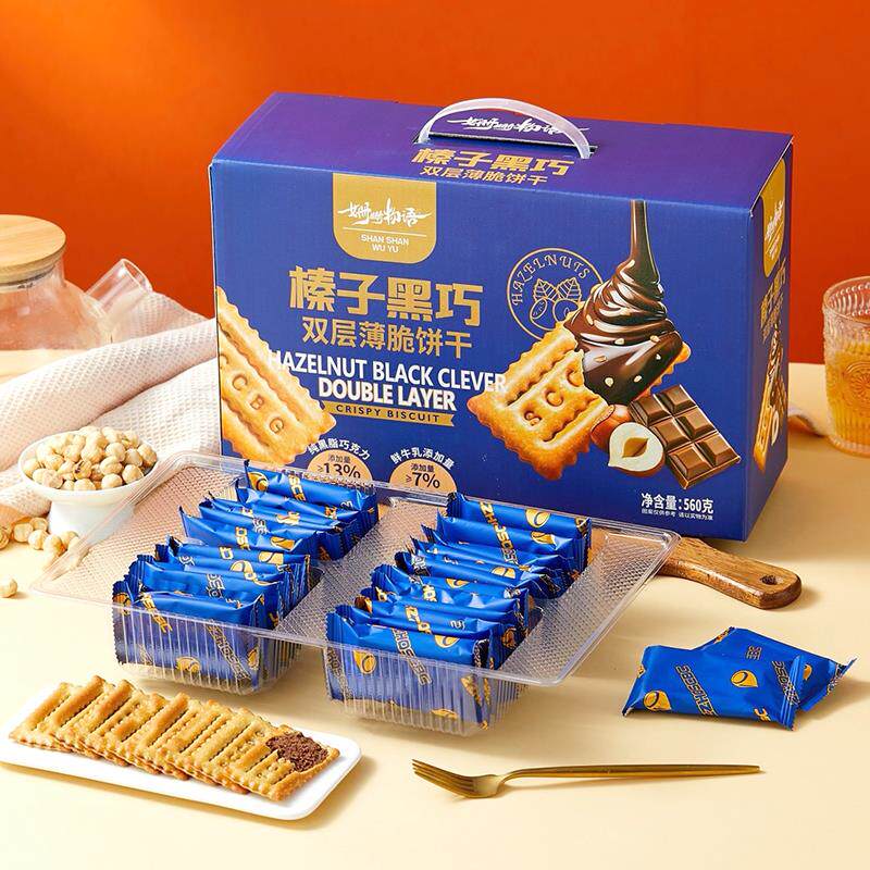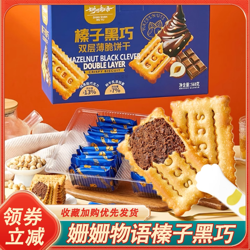 姗姗物语榛子黑巧双层薄脆饼干巧克力夹心饼休闲小零食茶点礼盒装