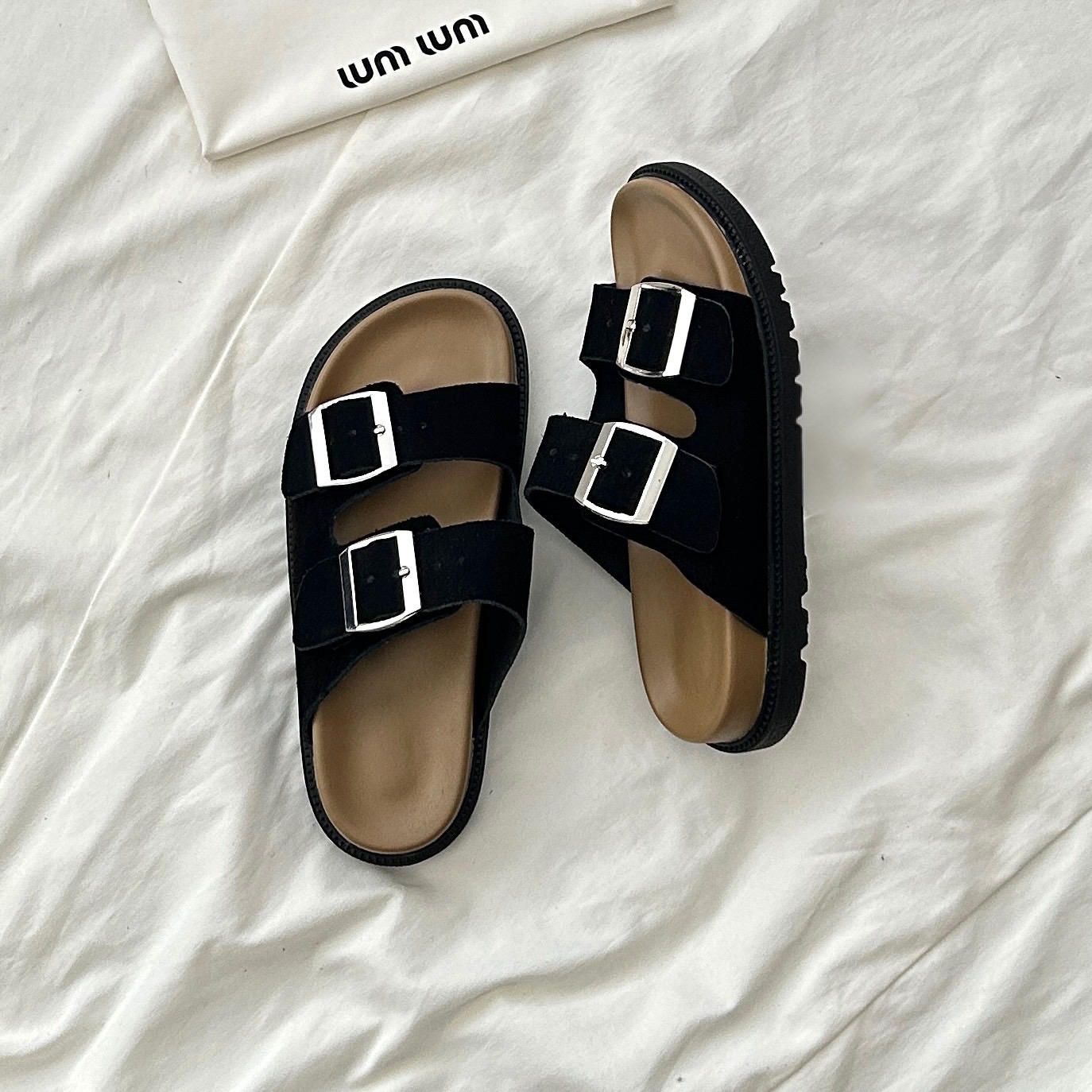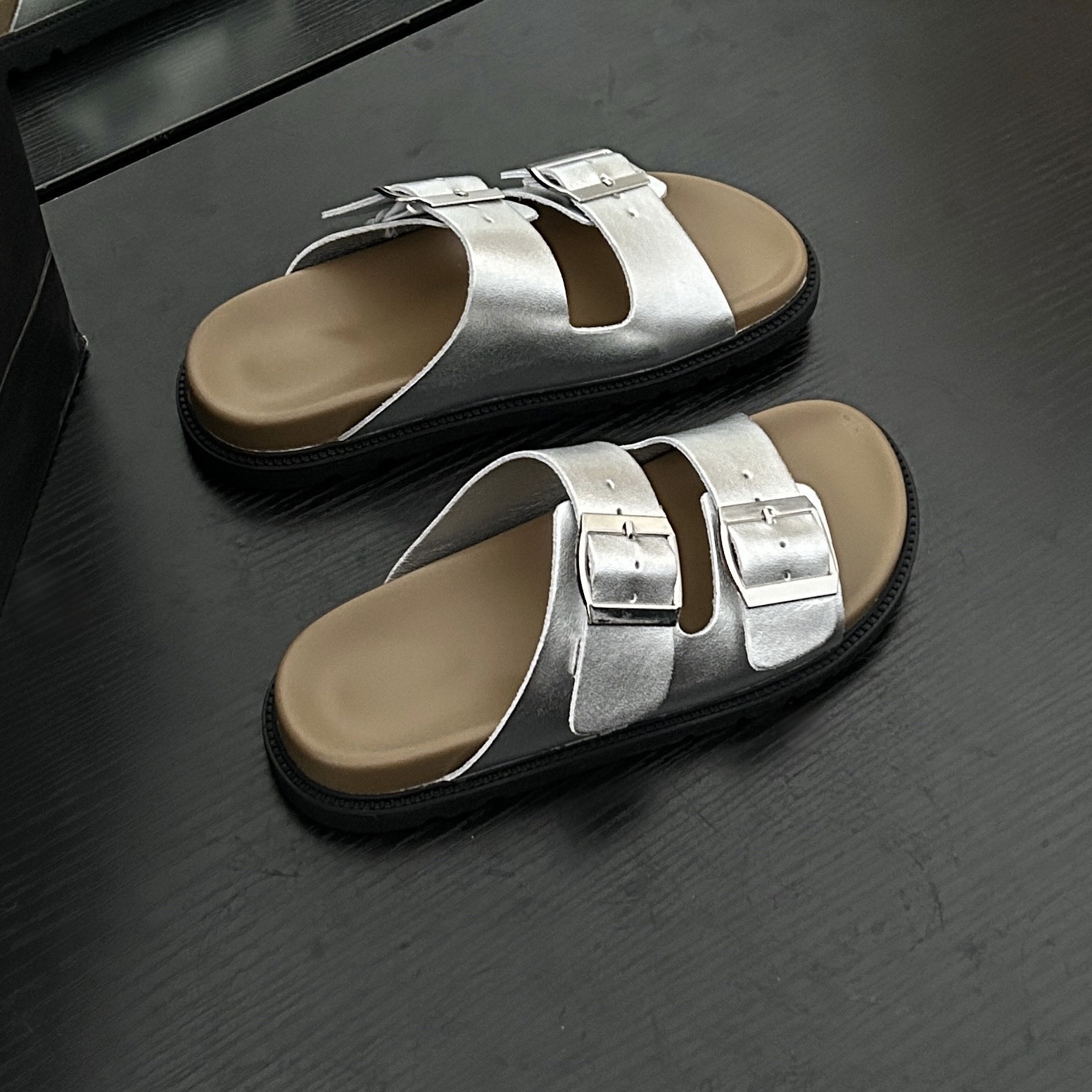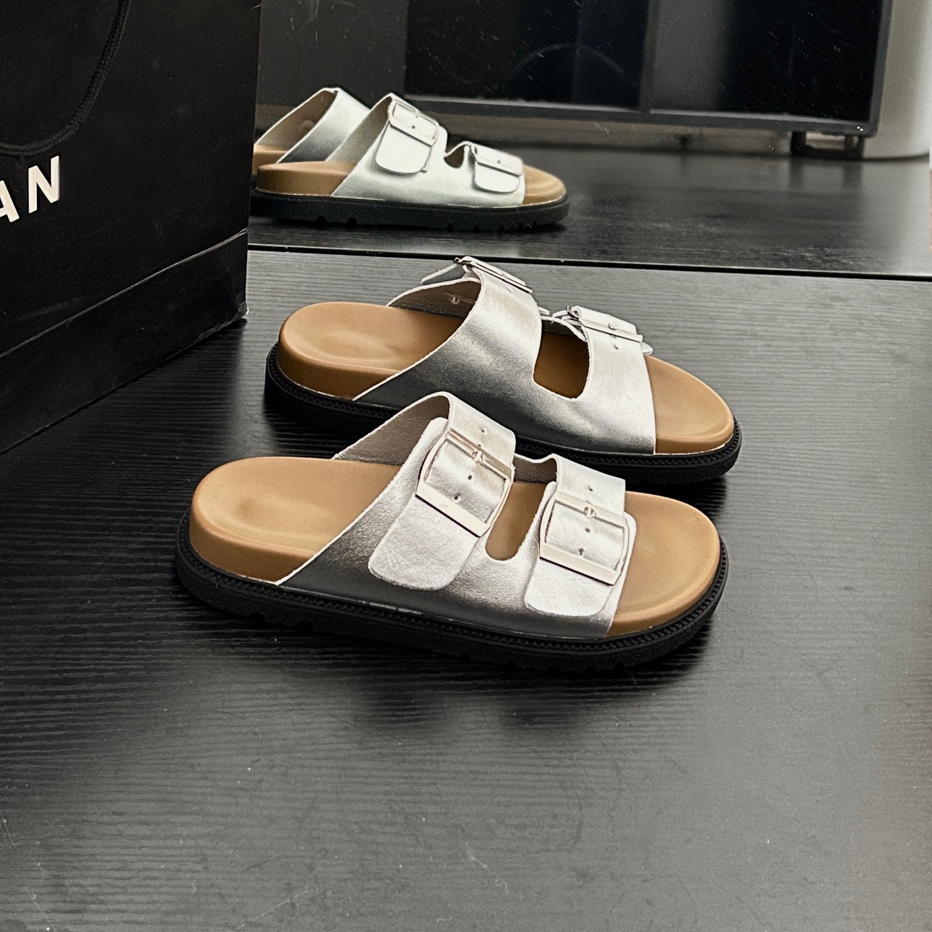 淘宝D先森女鞋工作室,真皮勃肯鞋女复古2025新款百搭休闲平底单鞋一脚蹬懒人豆豆鞋