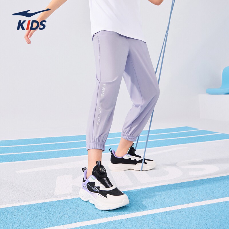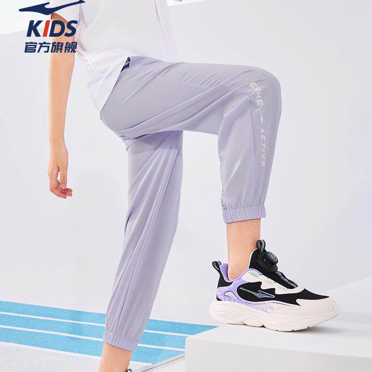 鸿星尔克童装女童运动速干长裤春夏透气束脚裤儿童弹力休闲裤子