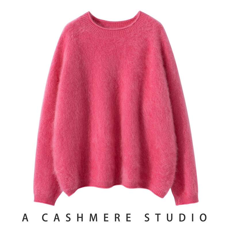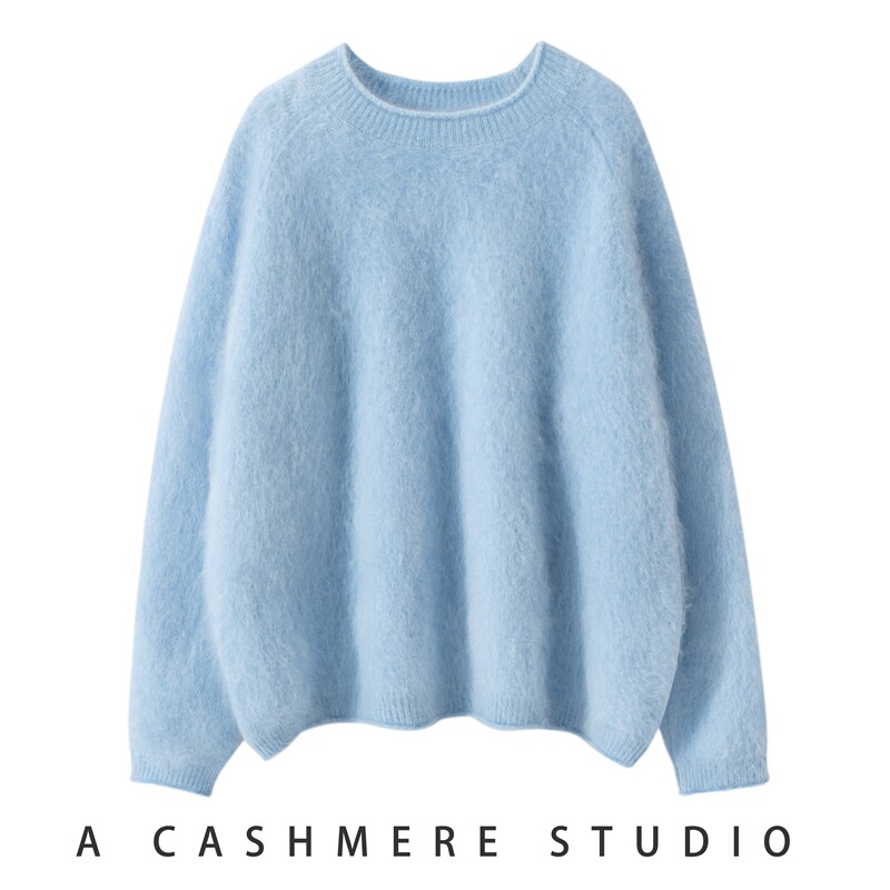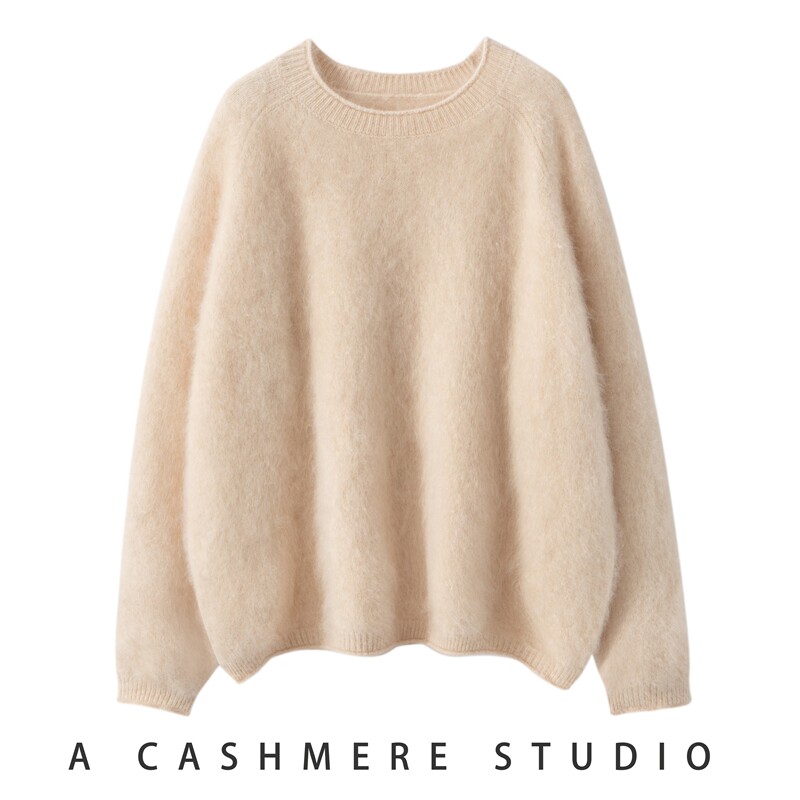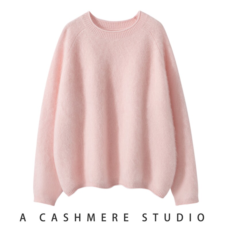 2024秋冬新款100%山羊绒衫女圆领套头高级感拉绒软糯针织打底毛衣