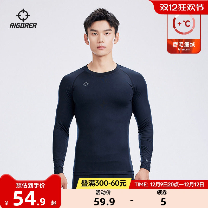 准者长袖压缩衣男士新款加绒篮球运动跑步健身衣吸汗弹力紧身衣