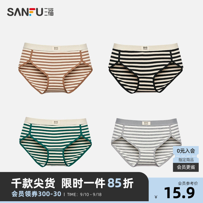 淘宝三福官方店,三福女低腰包臀美式条纹平角裤
