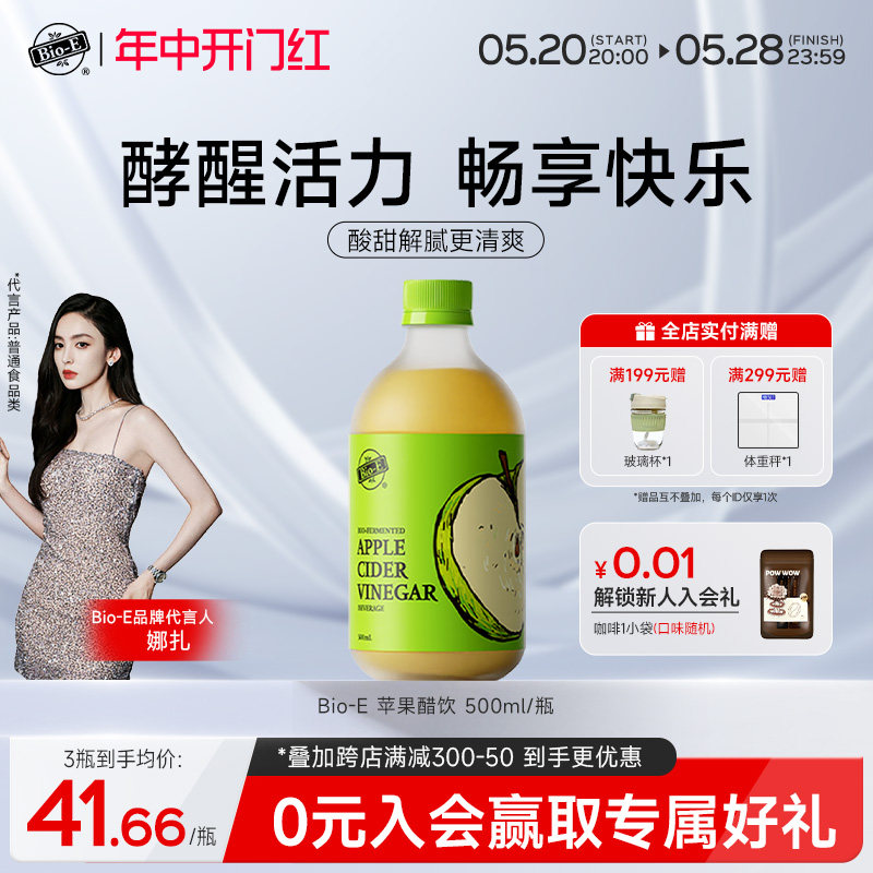 Bioe益生元苹果醋饮料纯原浆浓缩果汁果醋饮益生菌正品官方旗舰店