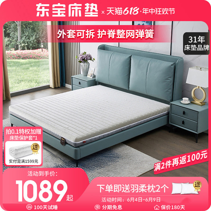 天猫东宝床垫旗舰店,东宝弹簧床垫席梦思软硬两用,天丝面料 软硬两用 可拆外套