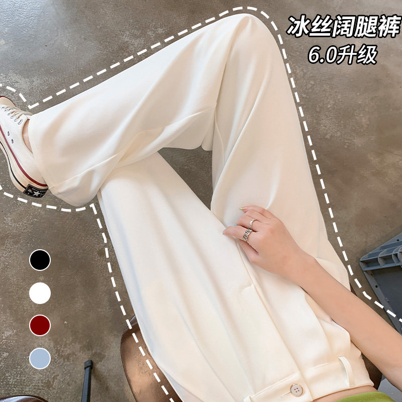 白色冰丝夏季垂感凉凉防晒阔腿裤