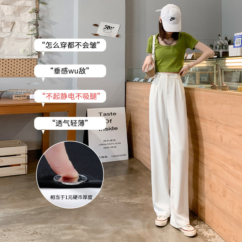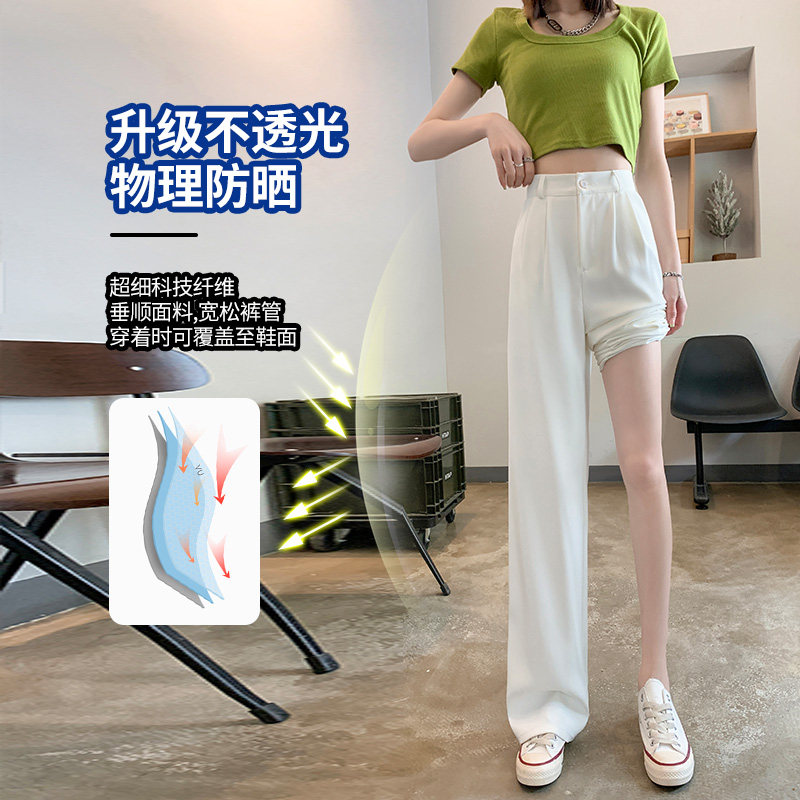 白色冰丝阔腿裤女夏季薄款垂感凉凉裤子防晒小个子直筒雪纺西装裤