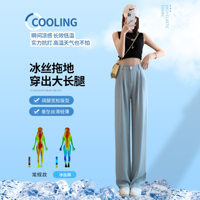 天猫户枢旗舰店,白色冰丝夏季垂感凉凉防晒阔腿裤,潮流精品,品质保证