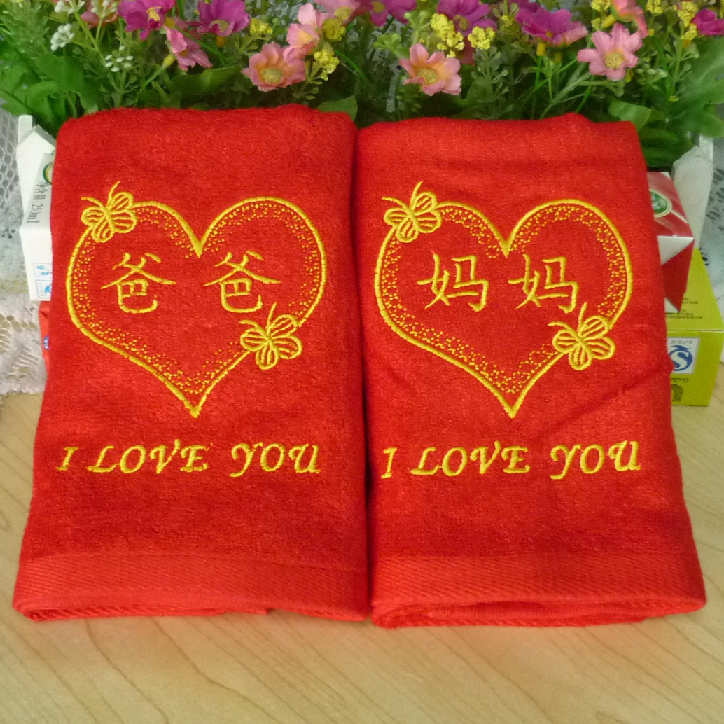 淘宝大山启航美妆护肤,本命年母亲节生日礼物 不退色竹纤维大红婚庆爸爸妈妈情侣毛巾