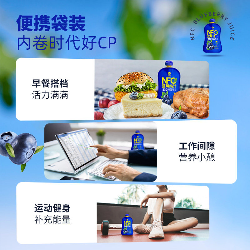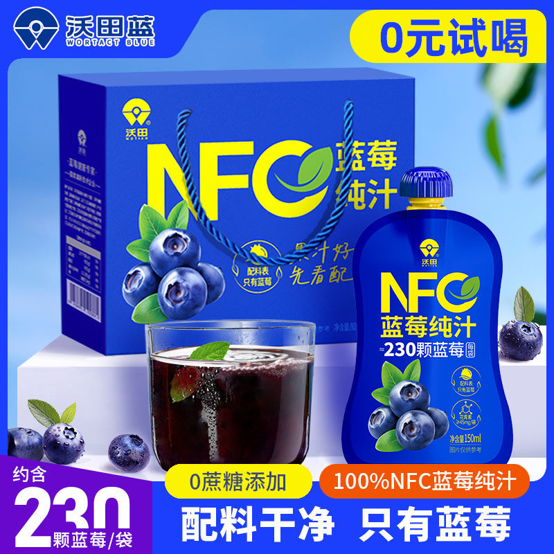 天猫沃田蓝旗舰店,沃田蓝NFC蓝莓纯汁150ml*10袋,不加一滴水、不加一粒糖,100%纯蓝莓汁