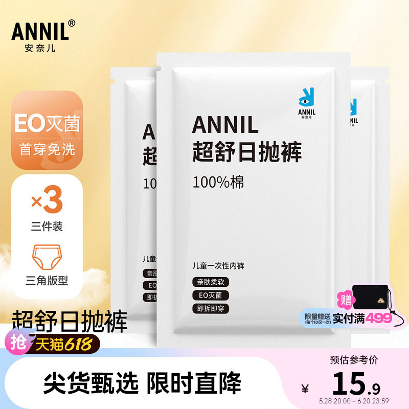 天猫安奈儿旗舰店,安奈儿童装女童一次性内裤三角裤三件装2025夏新款旅游免洗便携