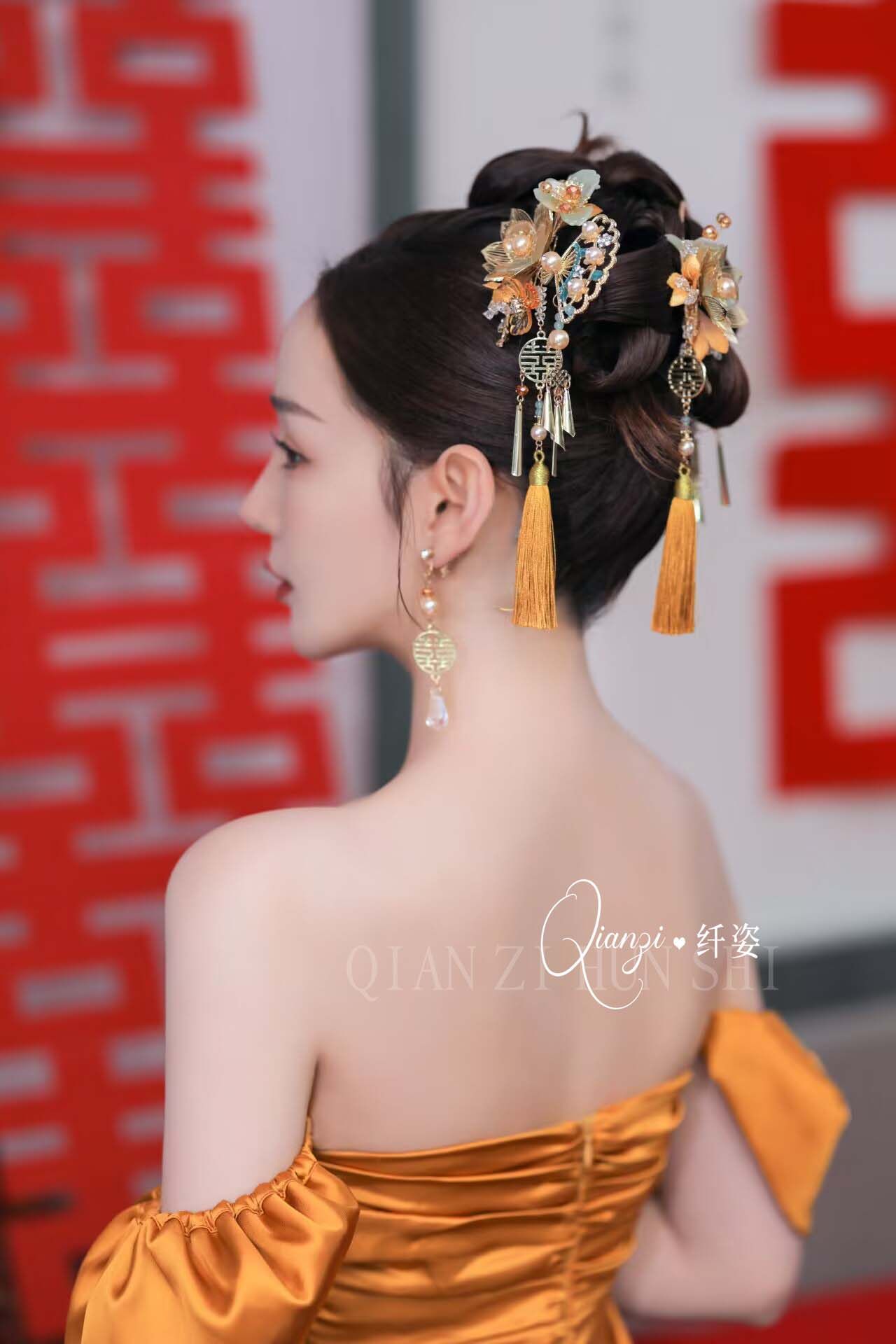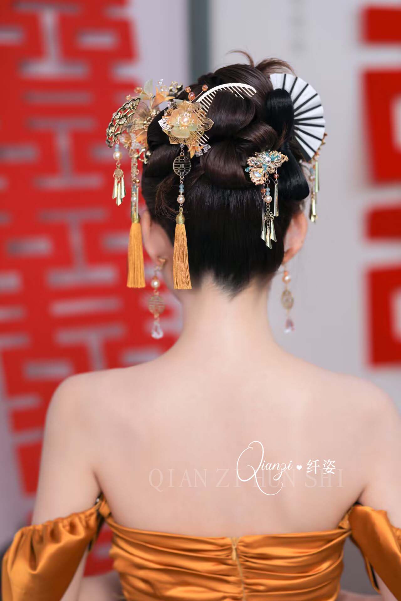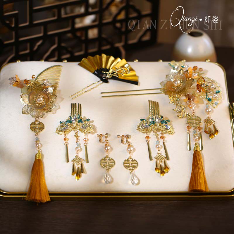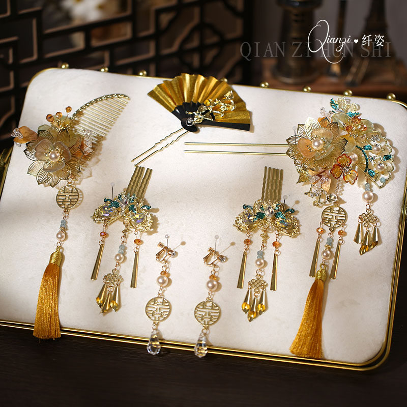 淘宝纤姿丽人婚饰,2023新款新中式新娘古风秀禾服头饰减龄扇子梳子发簪步摇晨袍发饰