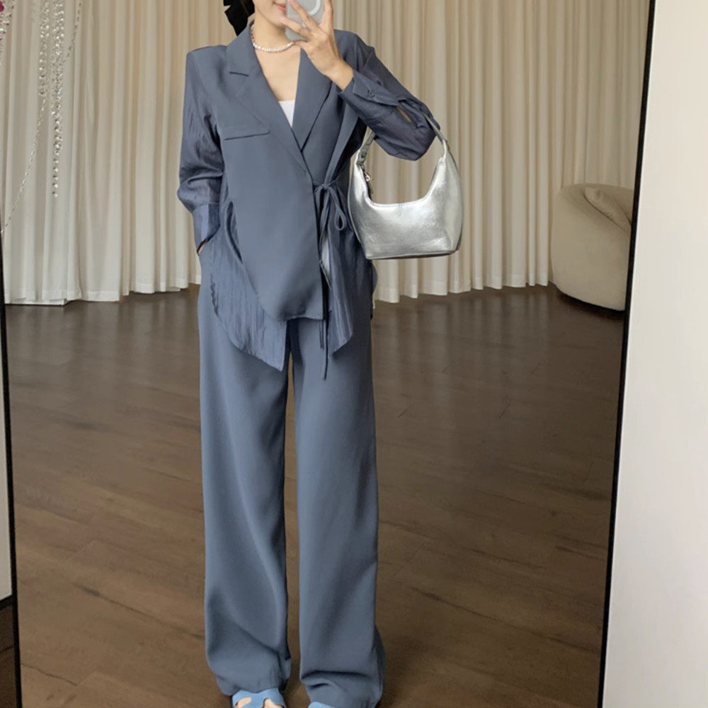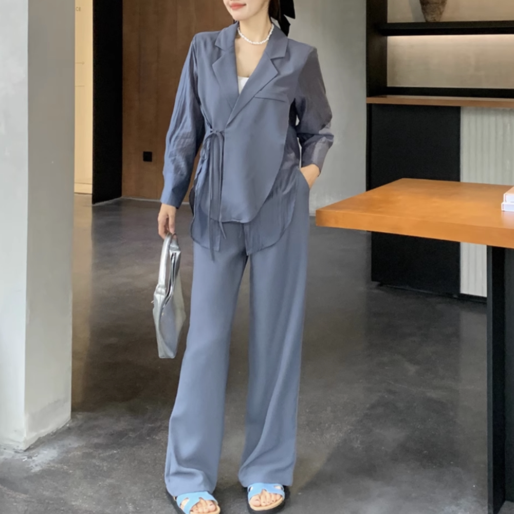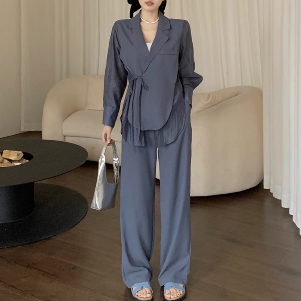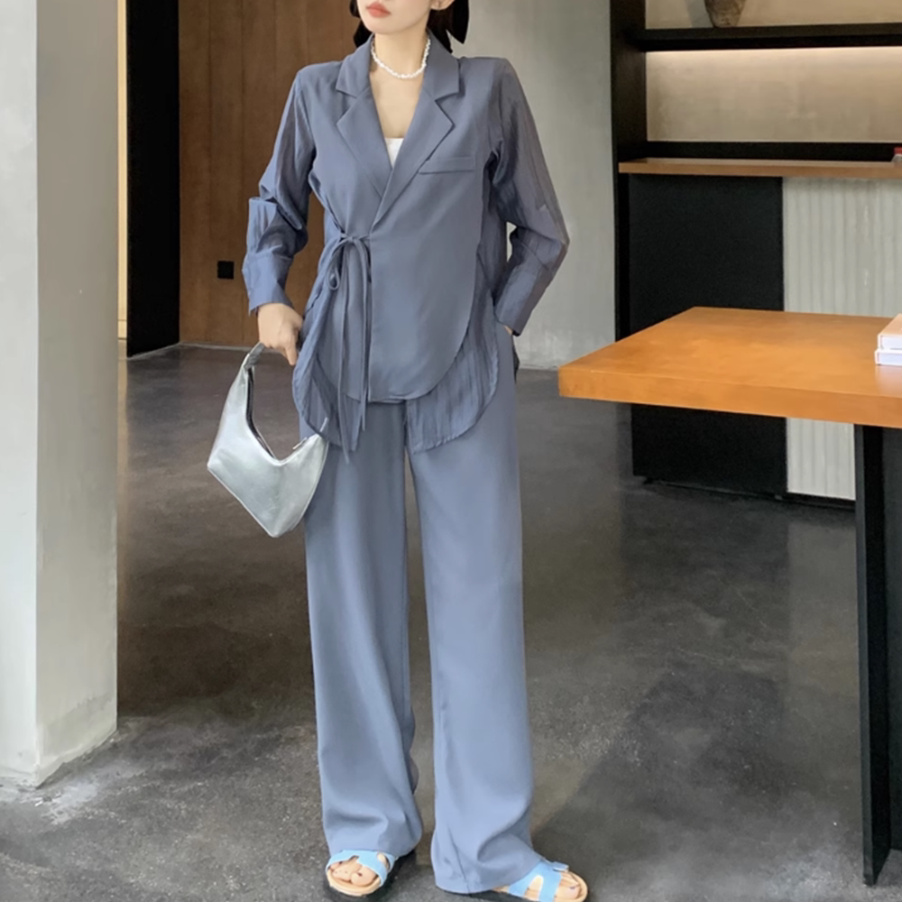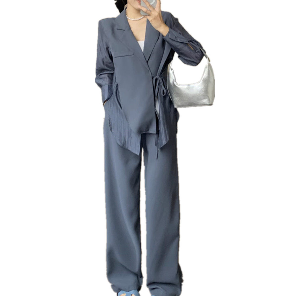 休闲时尚西装式上衣裤子两件套早秋大码别致设计显瘦上班西装套装