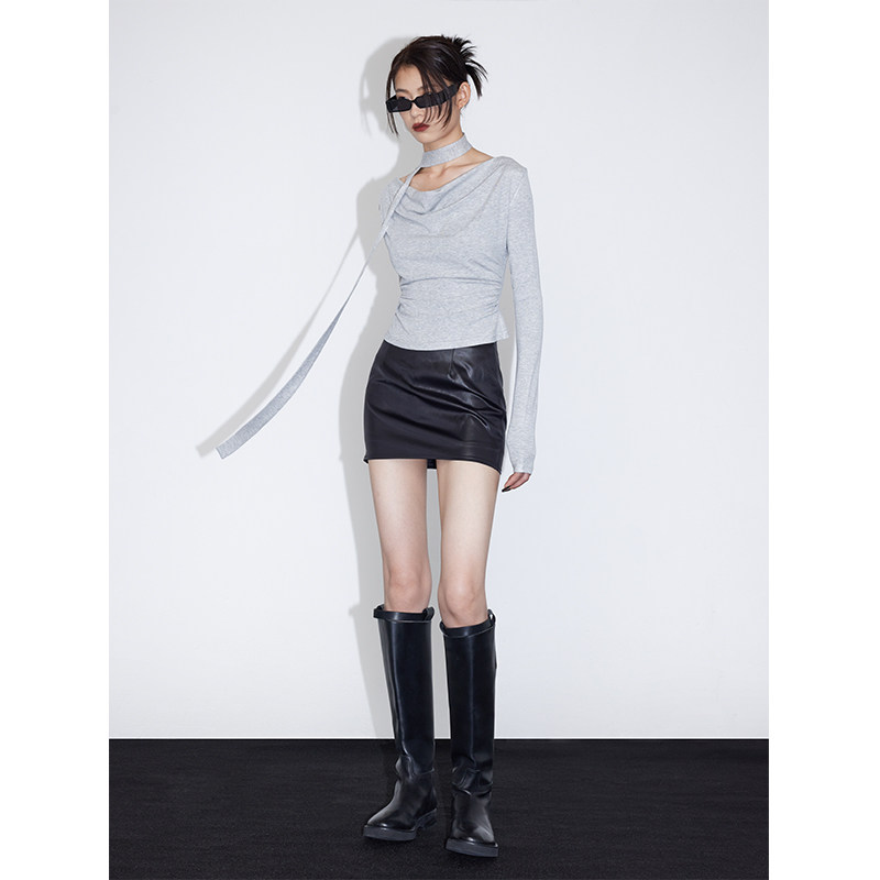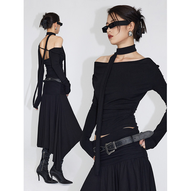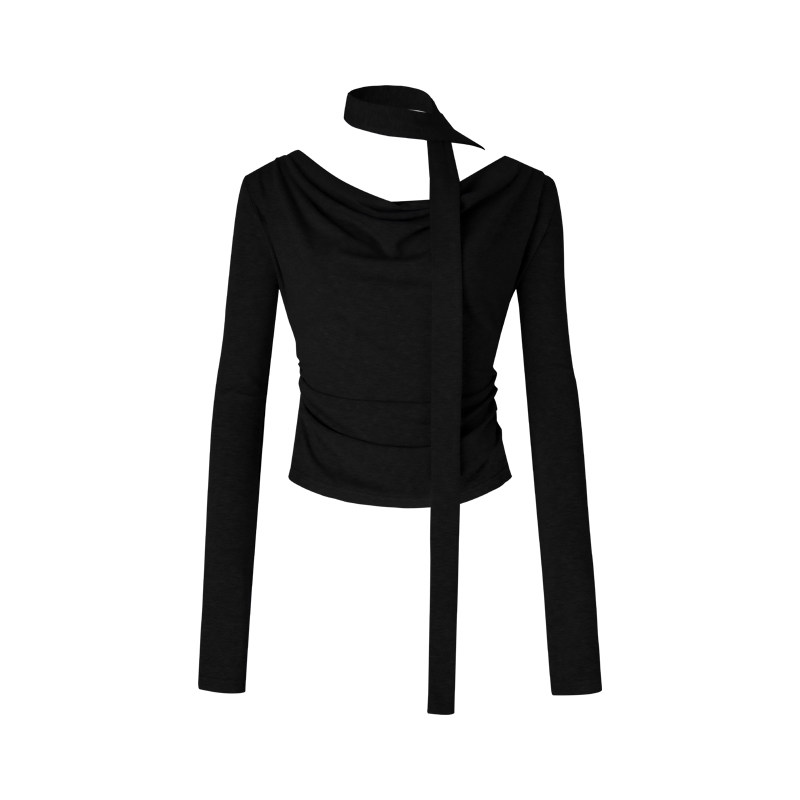 淘宝ourhour,ourhour飘带荡领可调节打底T恤
