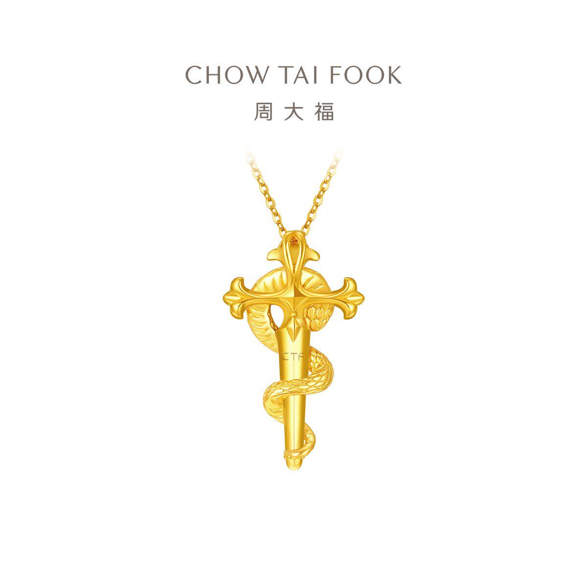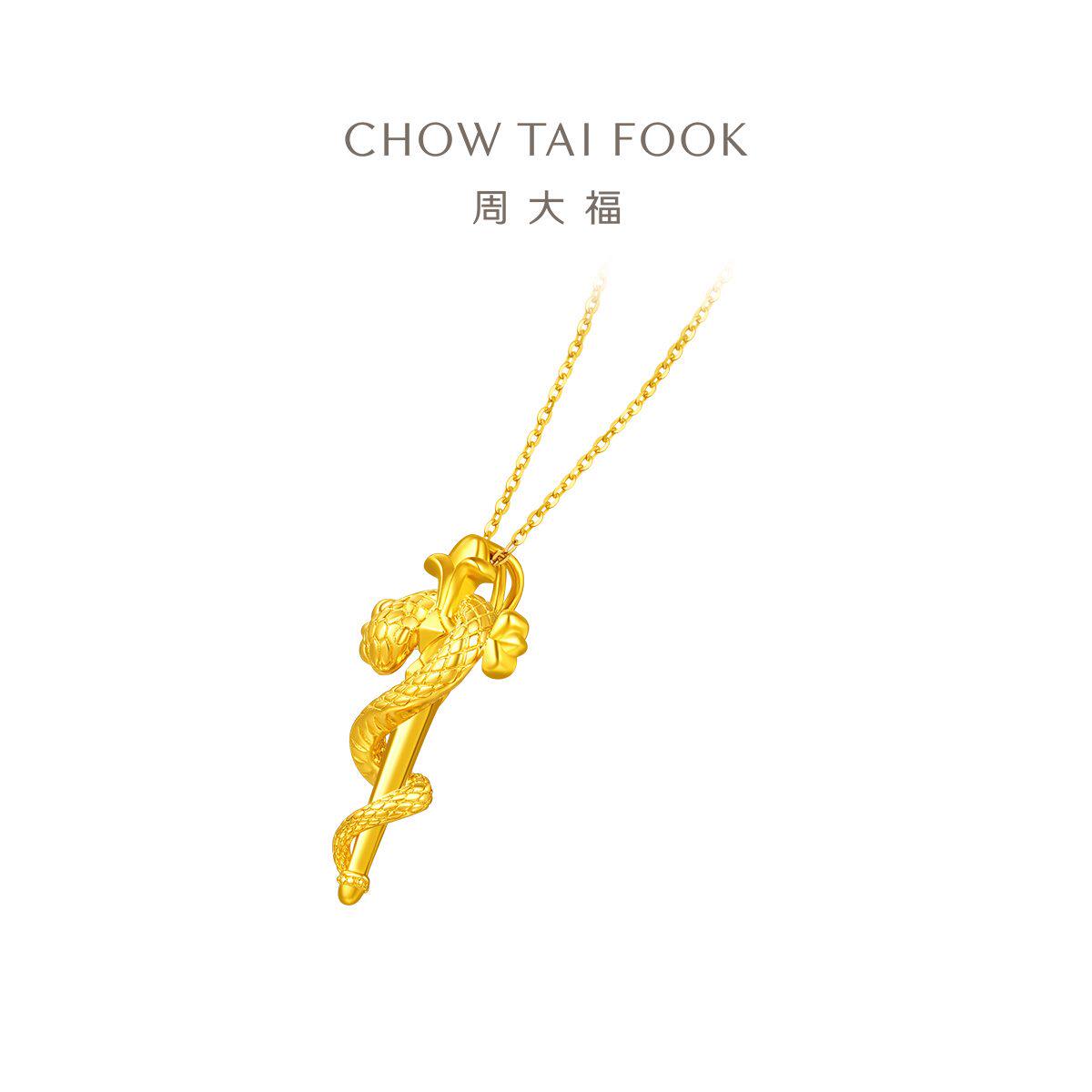 天猫周大福官方旗舰店,周大福蛇年生肖权杖蛇鸢尾十字本命年足金黄金吊坠计价多款大小版