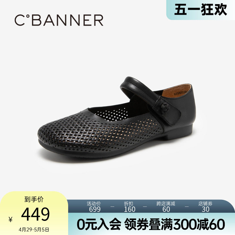 天猫千百度官方旗舰店,千百度镂空玛丽珍鞋春季新款透气凉鞋平底鞋羊皮单鞋女软底百搭,萌趣圆头造型 脚掌空间充足