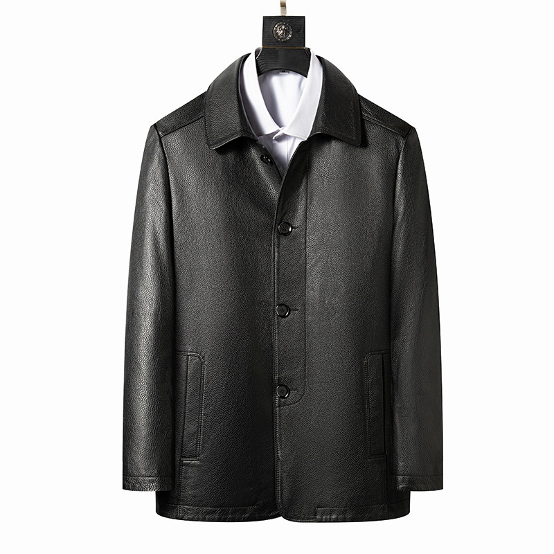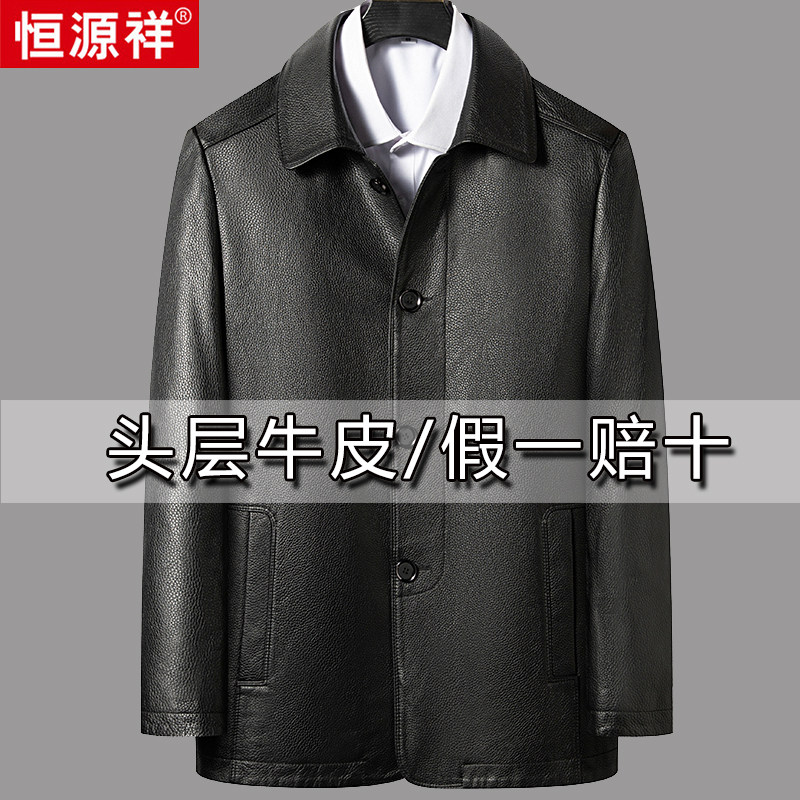 淘宝高端男装品牌专柜,头层牛皮恒源祥翻领休闲皮衣男