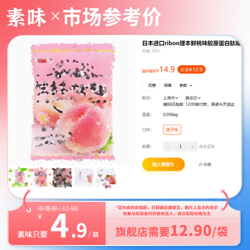 淘宝素味进口超市 折扣裸价特卖,正期清仓 日本进口理本桃味胶原蛋白肽糖果90g果酱夹心硬糖零食品