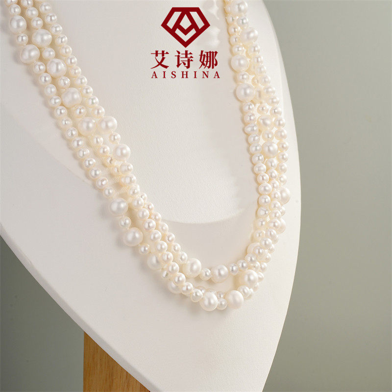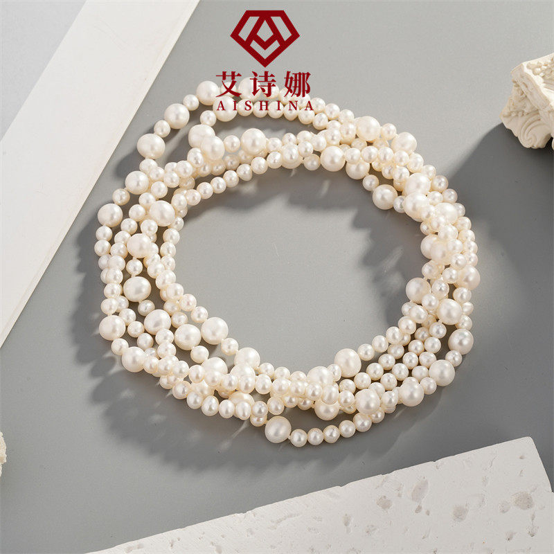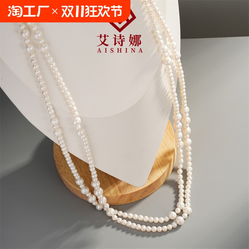 天然淡水珍珠小香风珍珠毛衣链多层叠戴强光…