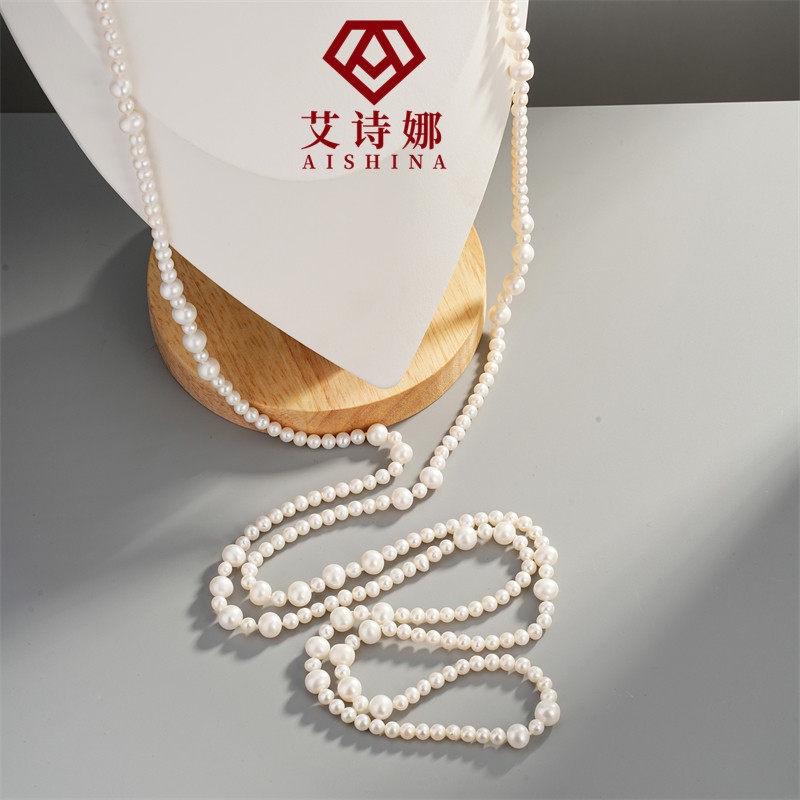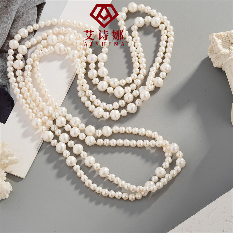 天然淡水珍珠小香风珍珠毛衣链多层叠戴强光项链女秋冬经典超长款