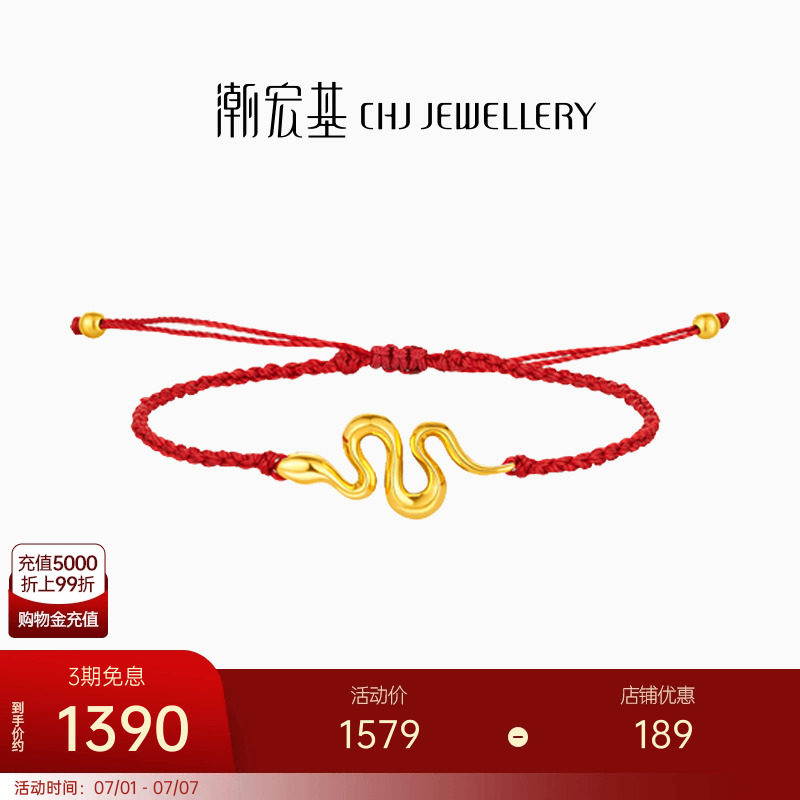天猫潮宏基珠宝旗舰店,潮宏基灵蛇黄金手链足金手绳本命年5D硬金红绳女生肖L生日礼物