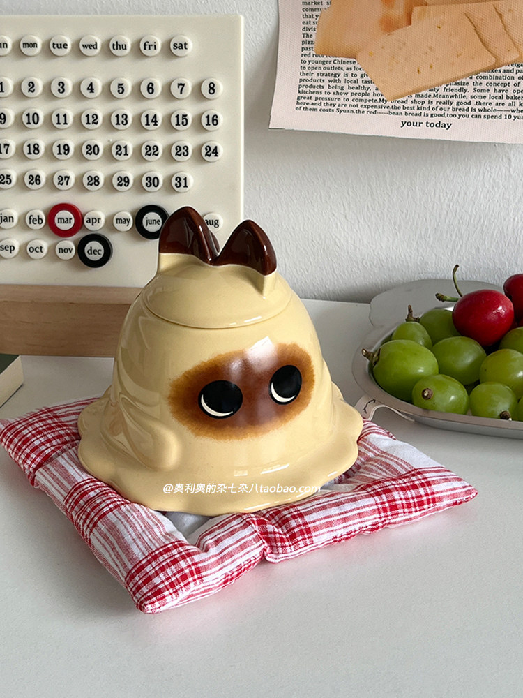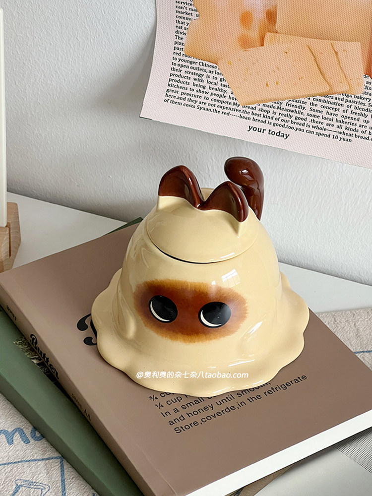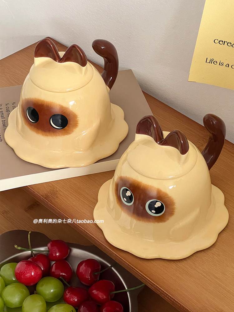 淘宝奥利奥的杂七杂八,可爱软萌逻辑猫咪马克杯陶瓷带盖早餐杯搞怪杯子生日礼物送男女友