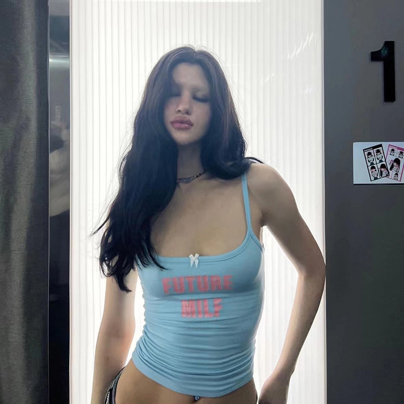淘宝KLalien欧美女装,KLalien 欧美纯欲字母印花修身吊带背心女辣妹性感打底短款上衣潮