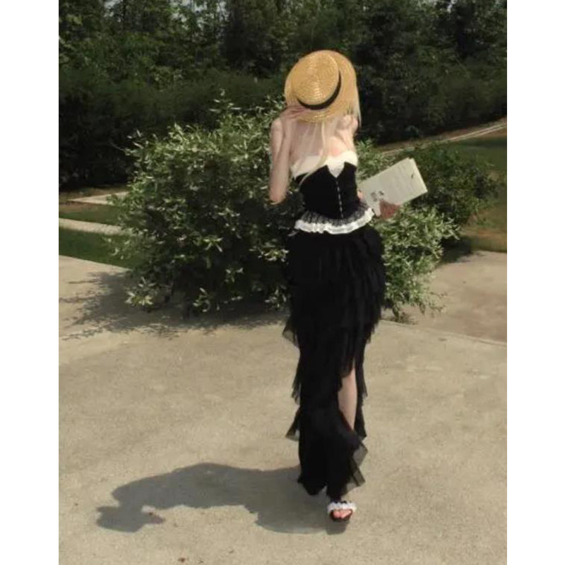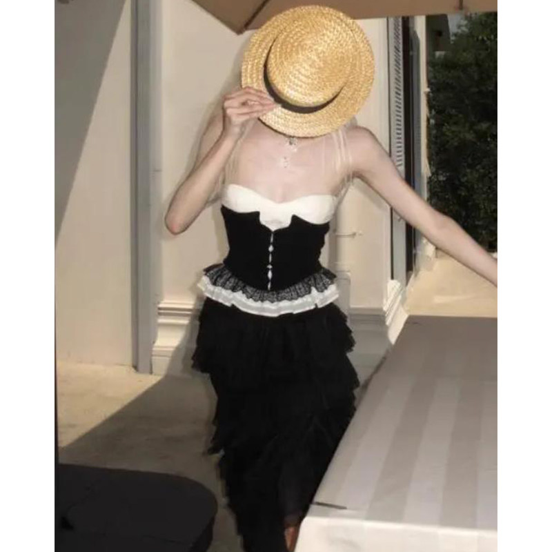 淘宝Millenuium girl,通勤法式蕾丝黑色抹胸外穿掐腰衣