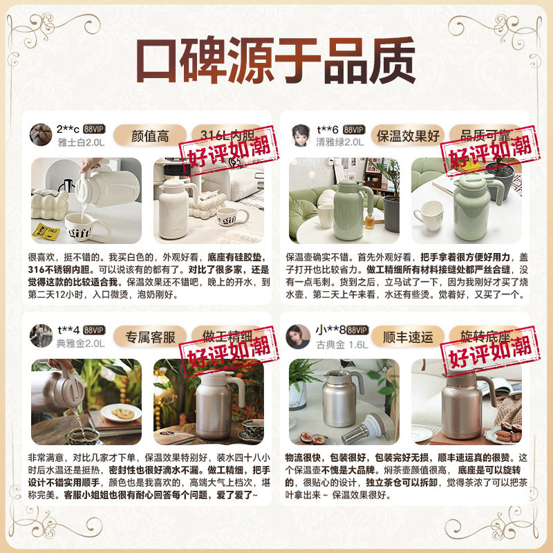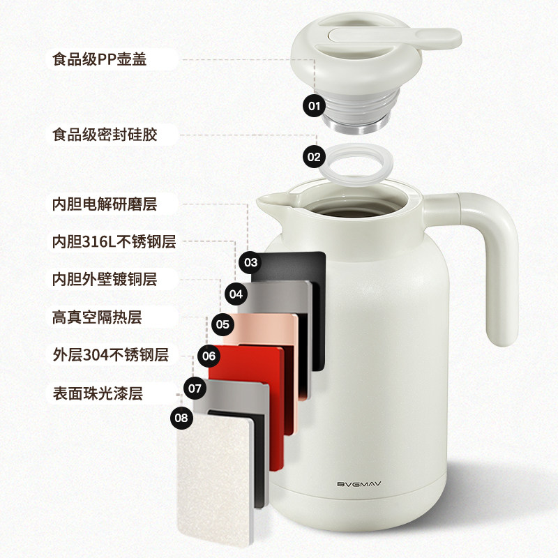 英国宝威玛保温壶家用大容量保温热水瓶焖茶壶316不锈钢热水壶2L