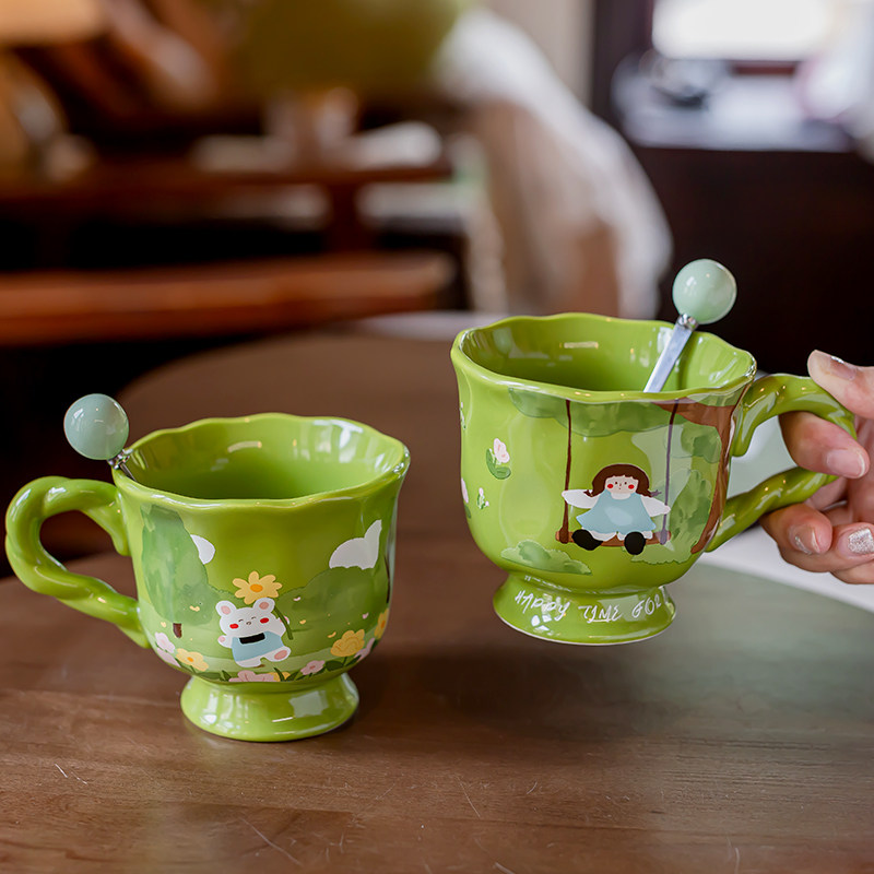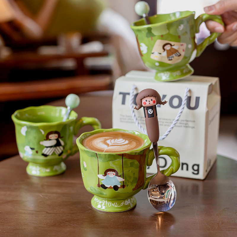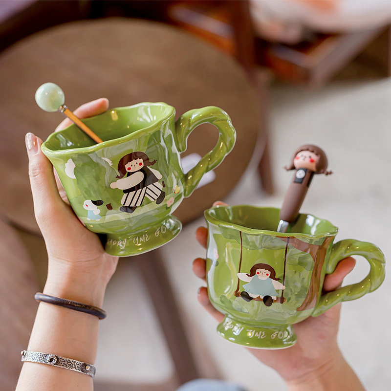 艺术感陶瓷马克杯女生2024新款可爱办公室咖啡杯子家用喝水早餐杯